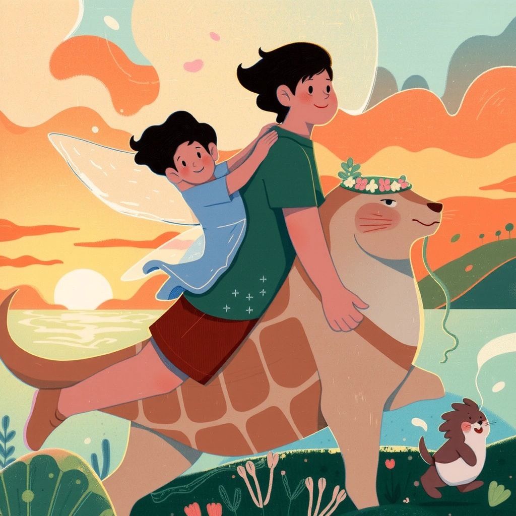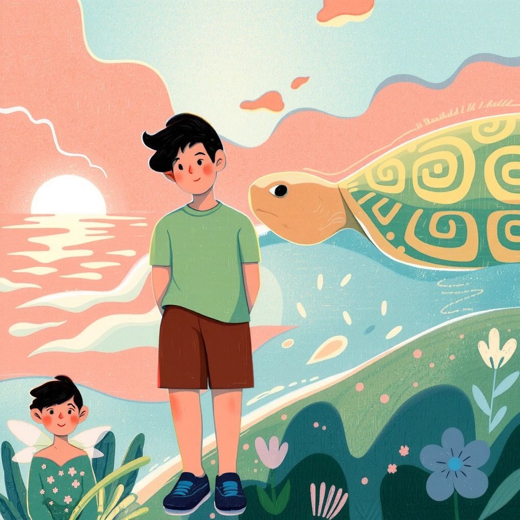 When they reached the Crystal Lake, they couldn't cross because the enchanted waters sparkled with magic. A turtle named [Tilly](ZMSGYJRT), ancient and wise, offered to ferry them across.