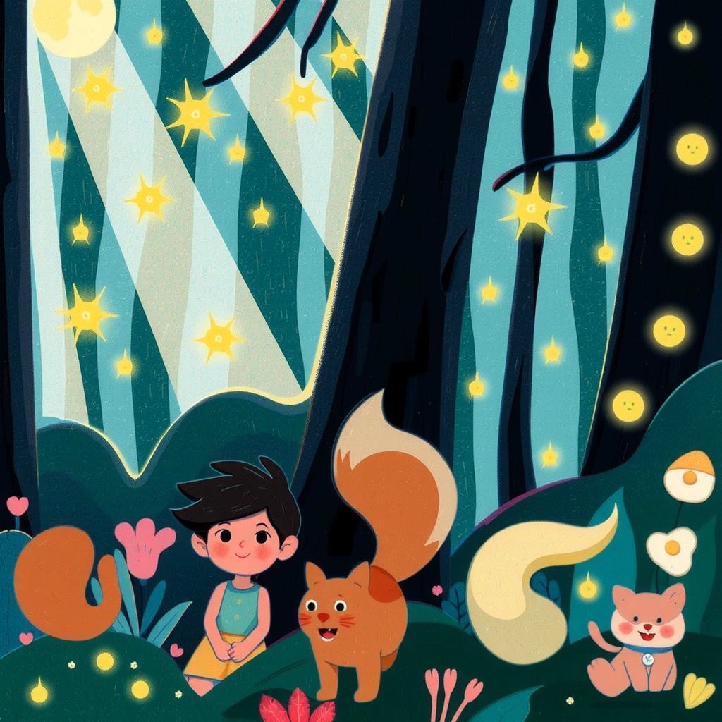 On the other side, they entered the Starlit Grove where fireflies light the way. They discovered a mischievous squirrel named [Scamper](V5SGHW9L) who had seen the puppy and joined their mission.