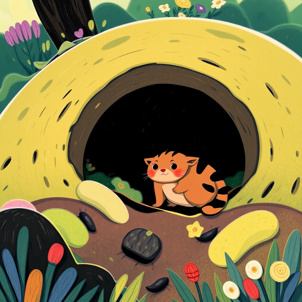 Finally, [Chester](XT5V47F5) saw a burrow in the hillside. ‘This looks just like my den!’ he thought happily. But inside, he found it damp and gloomy, with moss and bugs everywhere. [Chester](XT5V47F5) missed his own bright, cozy home.