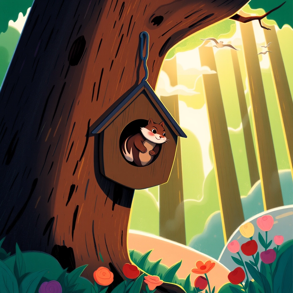First, [Chester](XT5V47F5) found an empty birdhouse hanging in the forest. 'This could be perfect!' he thought. But as soon as he climbed inside, it wobbled and made him dizzy. 'This isn’t sturdy enough for me,' he decided.
