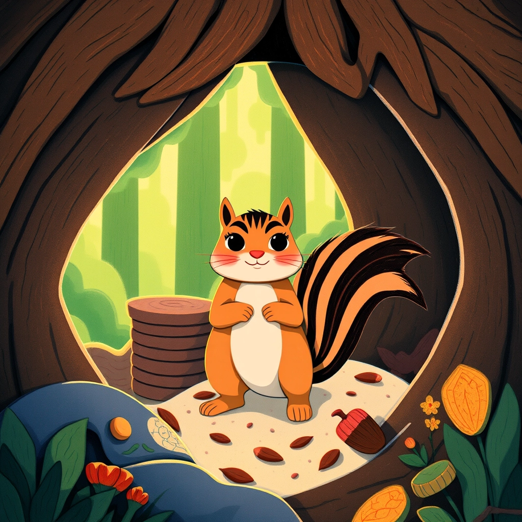 Once upon a time, [Chester](XT5V47F5) the chipmunk lived in a snug underground den. But one fine morning, he felt curious and wondered if there might be a better home outside his cozy burrow. Off [Chester](XT5V47F5) went to explore!