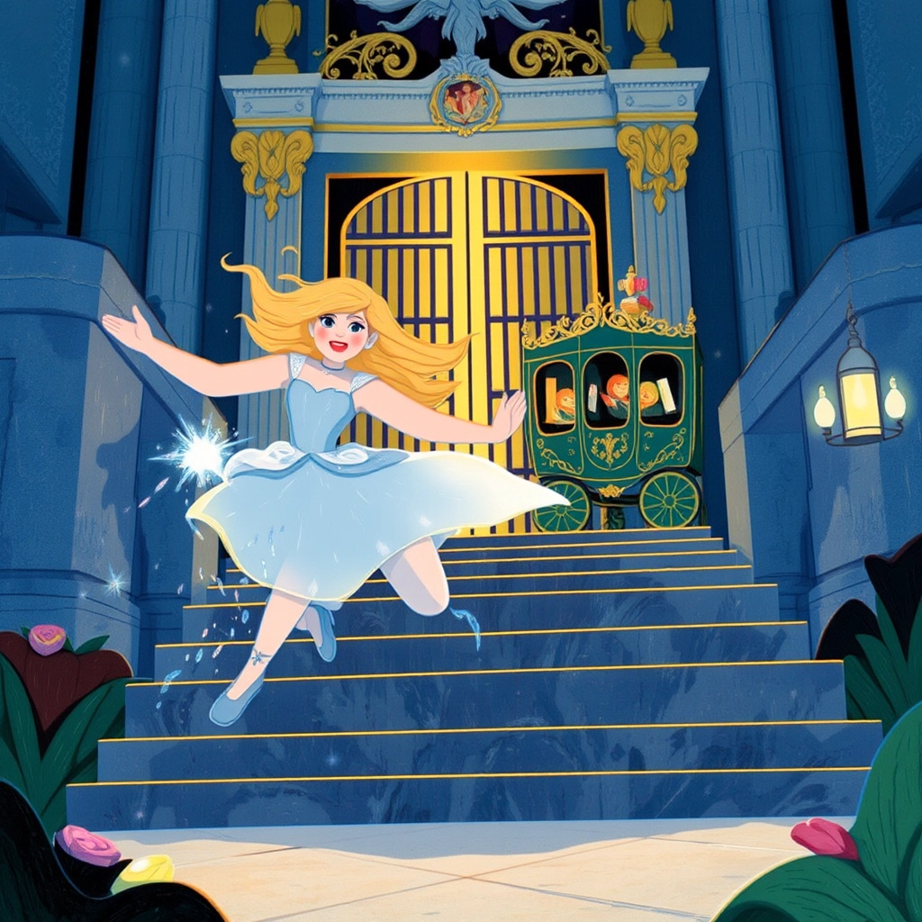 When the clock struck midnight, [Cinderella](PHQ4XWY4) fled, leaving behind a single glass slipper as the magic began to fade.