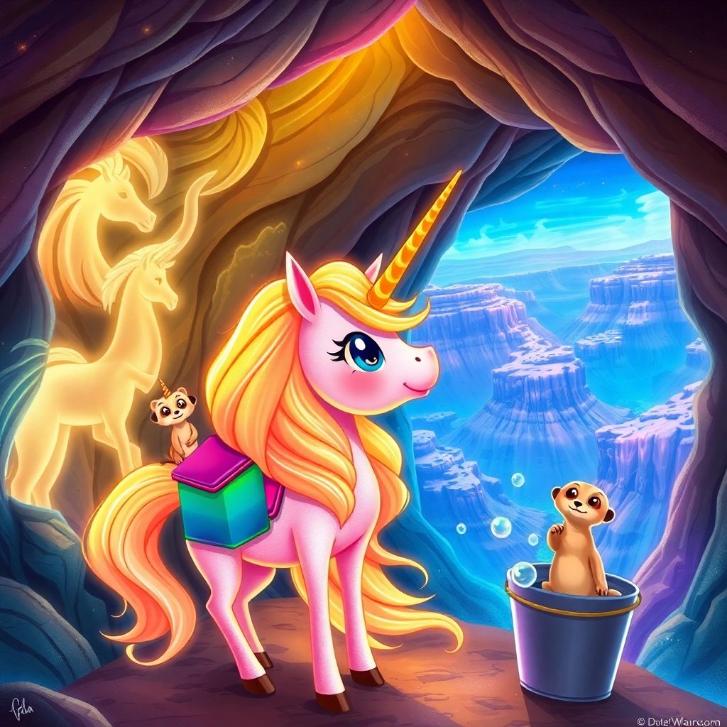 [Clara](6X3B4DLY) war ein fröhliches Einhorn mit glänzendem pinkfarbenem Fell und einer goldenen Mähne, die im Sonnenlicht funkelte. Sie liebte Abenteuer und beschloss eines Tages, eine Reise zu den beeindruckenden Felsen des Grand Canyon zu machen. Mit einem leuchtenden Rucksack voller Regenbogenproviant machte sie sich auf den Weg.
