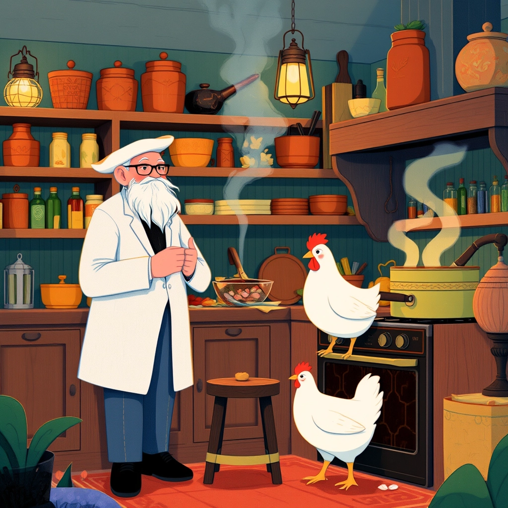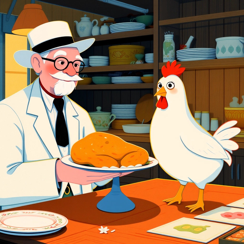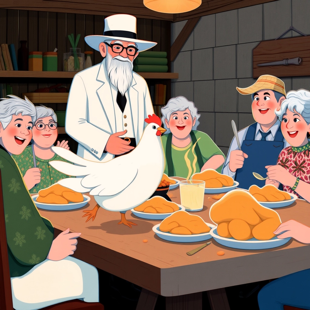 It was then [Colonel Harwad](DP3KHXZ7) knew he had created something truly special. [Clucky](7XNHWPK6) clucked with joy as he said, 'This recipe is not just chicken; it's happiness on a plate!'
