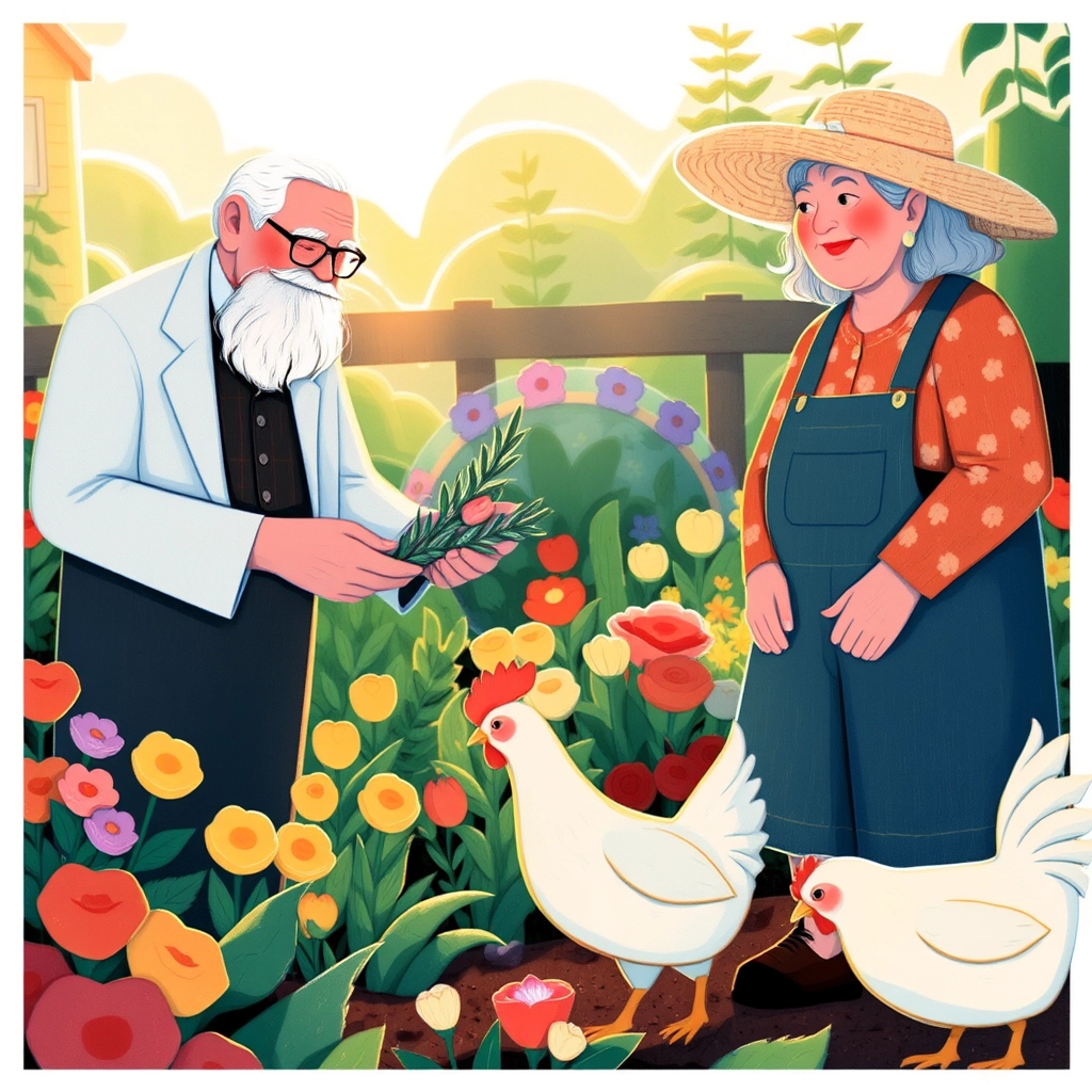 As they walked, they came across [Farmer Mabel](L77KPBPS), who was tending to her garden. 'Good morning, Colonel!' she called out. 'Would you like some fresh rosemary for your chicken?' The Colonel tipped his hat and gratefully accepted.