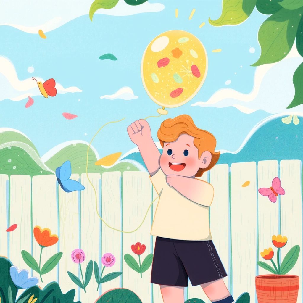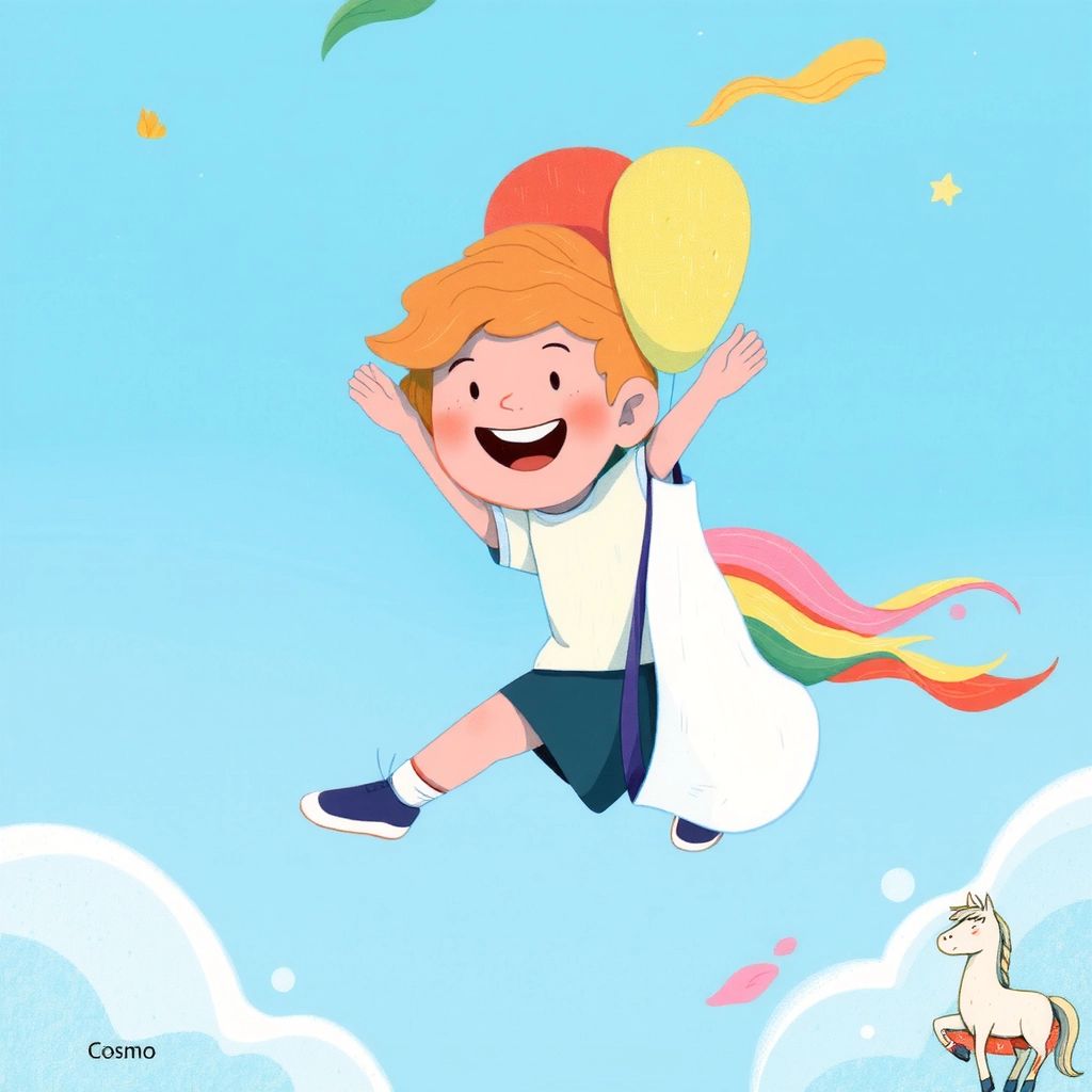 [Cosmo](ZZPP3KDT) was a curious little boy with a big imagination. One sunny afternoon, he discovered something extraordinary—a shiny, magic balloon floating gently in his backyard.