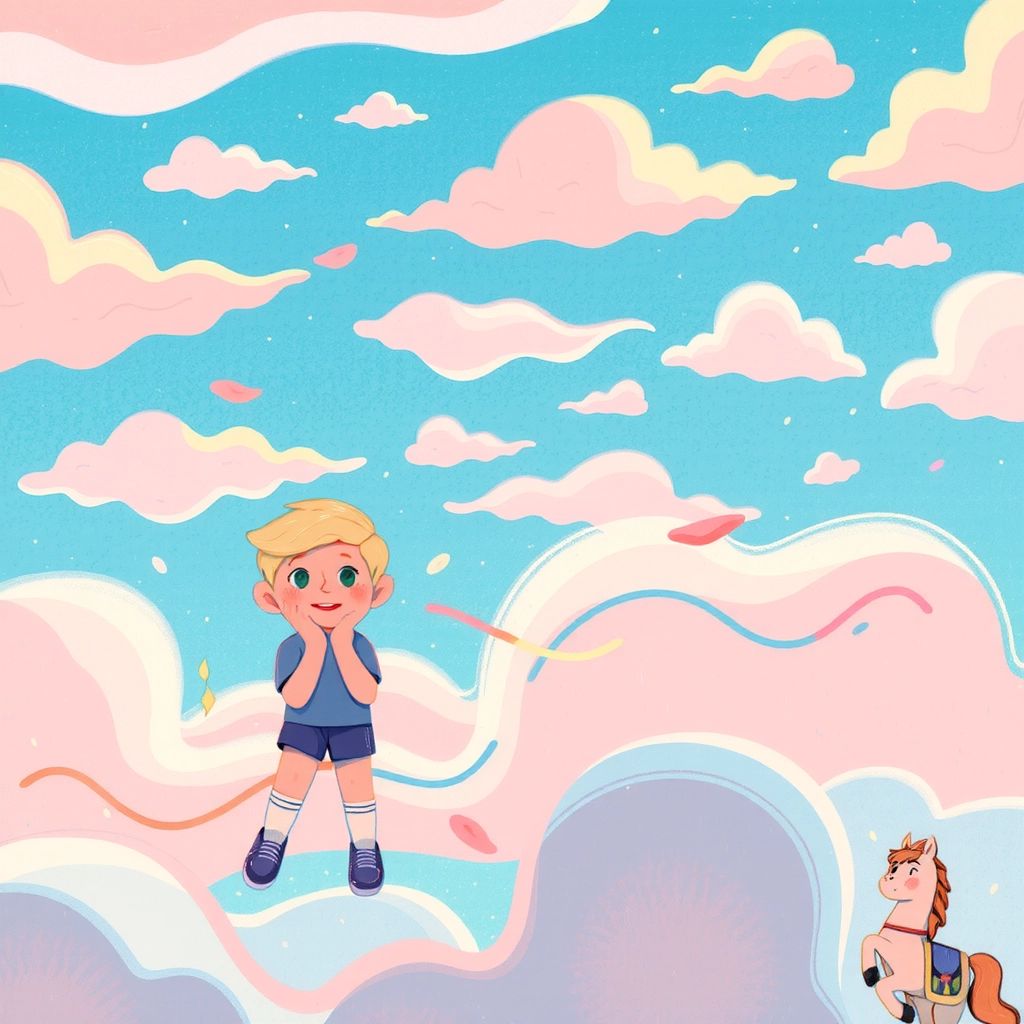 As they soared higher, they came upon a land of cotton candy clouds. Everything was sweet and soft, and the air smelled like sugar.