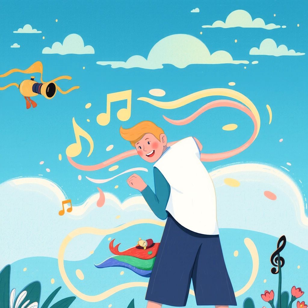 They laughed and played, exploring the floating islands of songs. [Sparkle](HVCY2954) danced to the music while [Cosmo](ZZPP3KDT) hummed along happily.