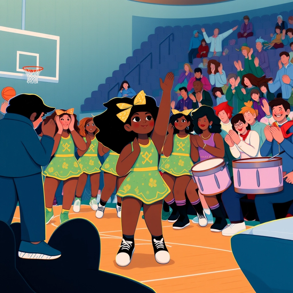 [Tiana](2WZVBMDY)’s favorite moment came when the cheer captain, a girl named [Kiara](4GCF7HJ7), led a chant where the entire crowd participated. Everyone stomped and shouted, 'Greenfield Pride!' The sound was thunderous and thrilling.