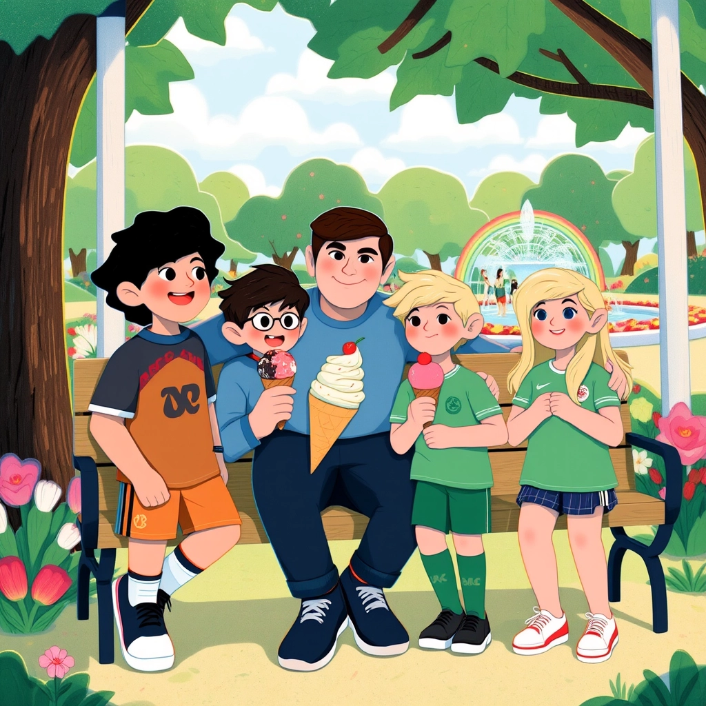 After practice, [Coach Mike](QX9H6KXH) treated everyone to ice cream. [Leo](9GDQBMV2) chose chocolate, [Bella](ZQKF5SD3) picked strawberry, and [Coach Mike](QX9H6KXH) went for mint chocolate chip. 'Yum!' they all said together.