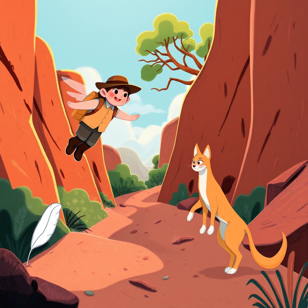 As [Dagz](Y7KZBCWD) flew deeper into the outback, he met a dingo named [Daisy](BHZ9K3KD). She had golden fur with white patches. 'Lost, fly-boy? The winds get tricky here!' she barked with a cheeky grin.