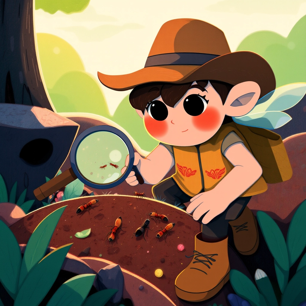 With his four hands, [Dagz](Y7KZBCWD) pulled out a special magnifying glass to take a closer look at the outback's soil. 'Amazing! Look at all these tiny ants!' he marveled at the hardworking insects.