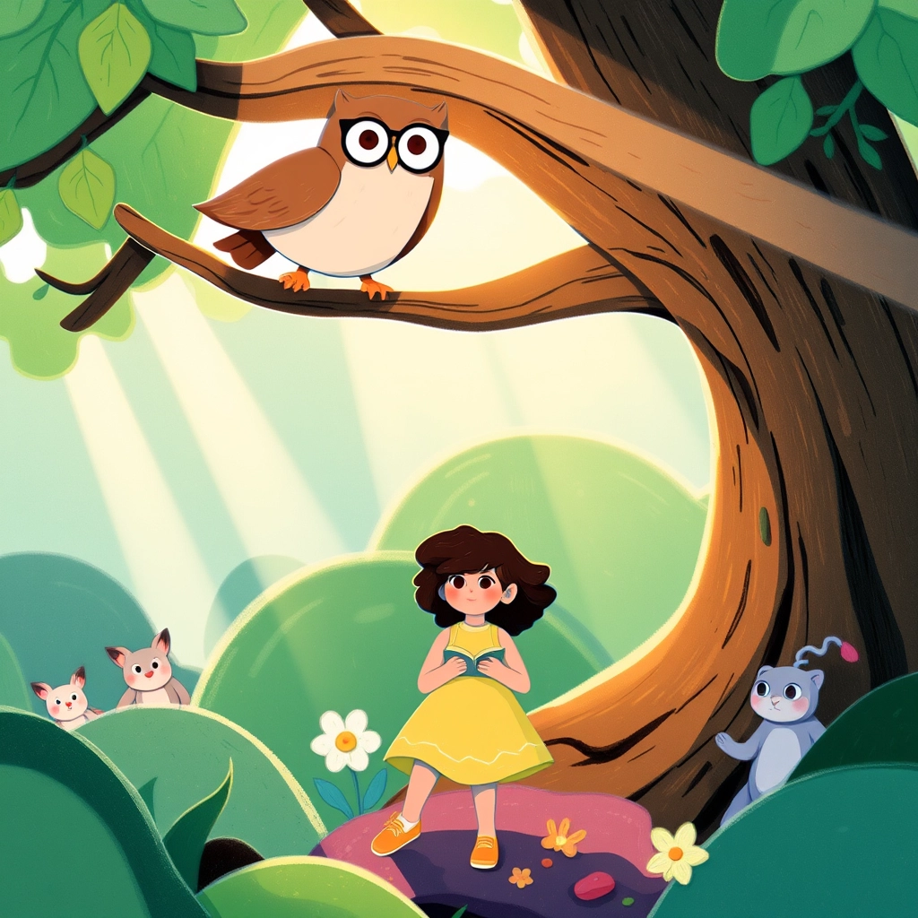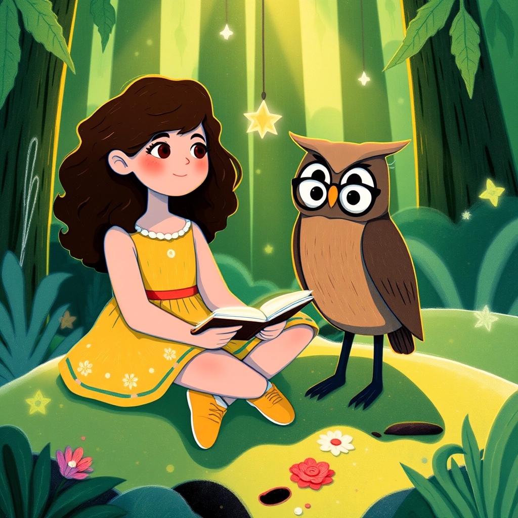 In the heart of the woods, she met an owl named Oliver, who wore glasses and carried a tiny book under his wing. 'Welcome, [Daisy](LX5DFLL9),' he said, 'to the Enchanted Forest of Knowledge!'