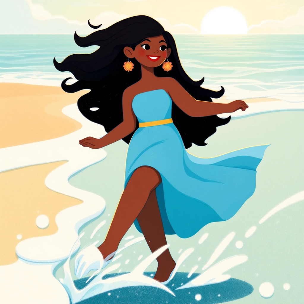 Whenever she stands near the waves, I can almost hear the sea call her name. Her favorite color is blue — just like the sky when it's happy, just like the deepest parts of the ocean.
