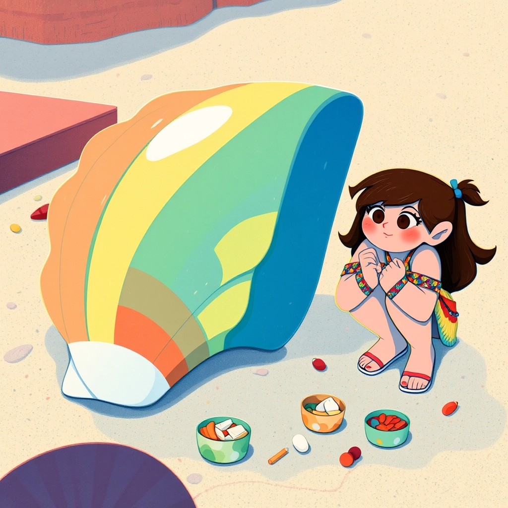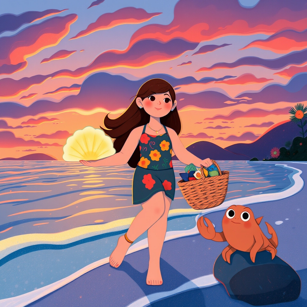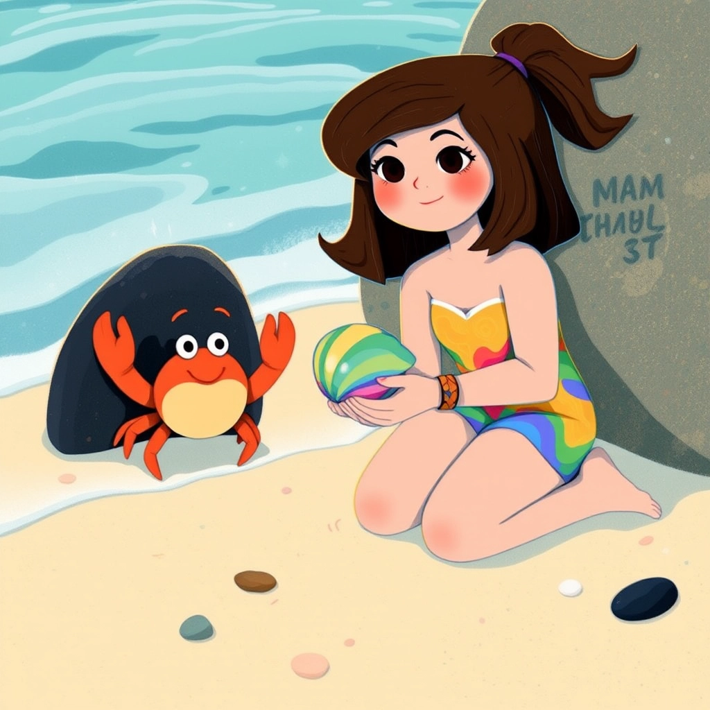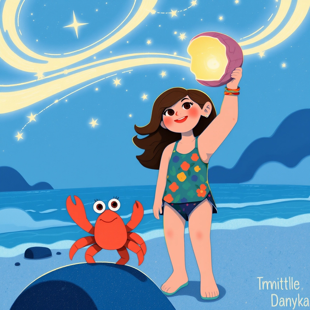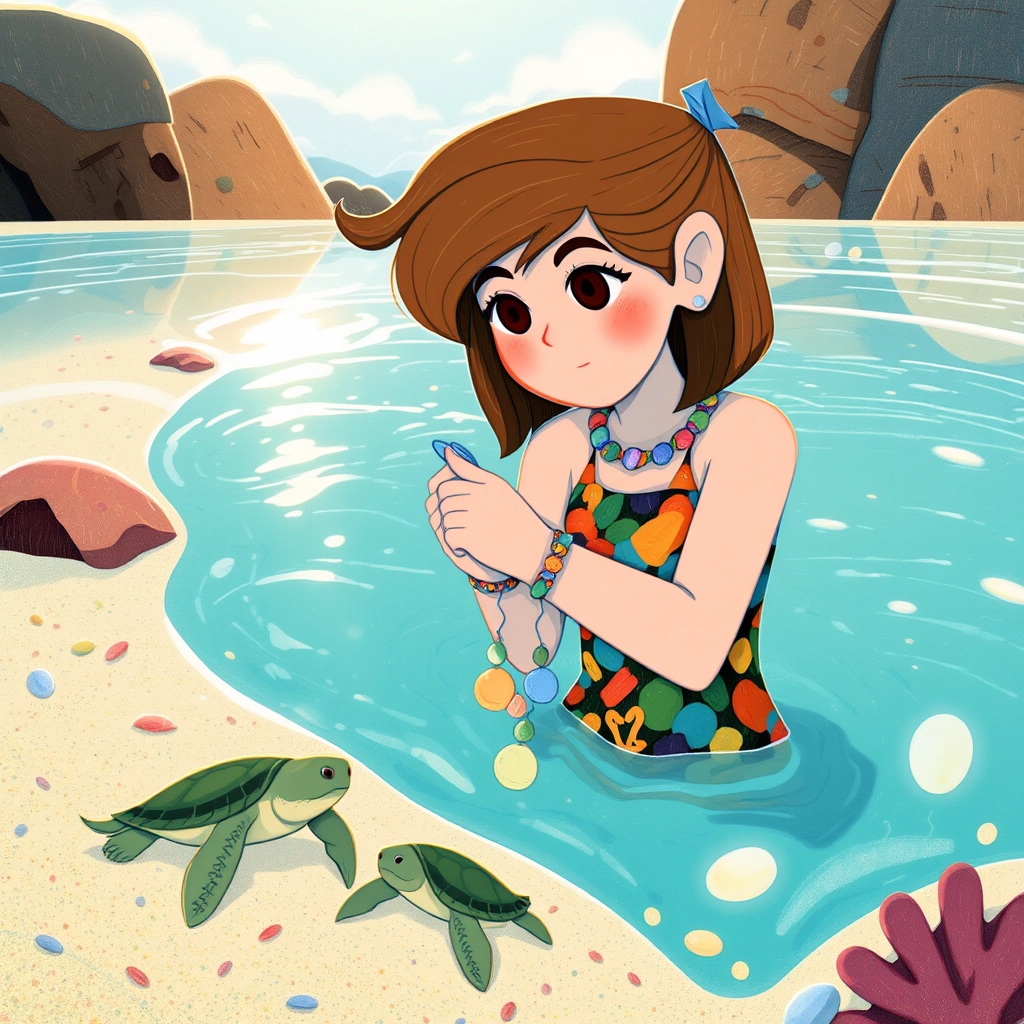 From that day on, [Danyka](2L5DWQHS)’s crafts became famous around the shore. Her kindness and creativity brought joy to all the beach’s visitors, both human and sea creature alike.