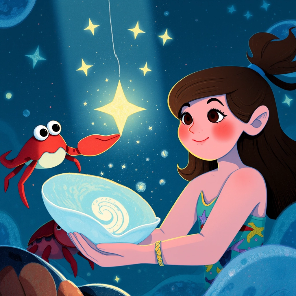 The crab explained that the Shell of Imagination could create anything she dreamed of, but only if she used it wisely and with kindness.