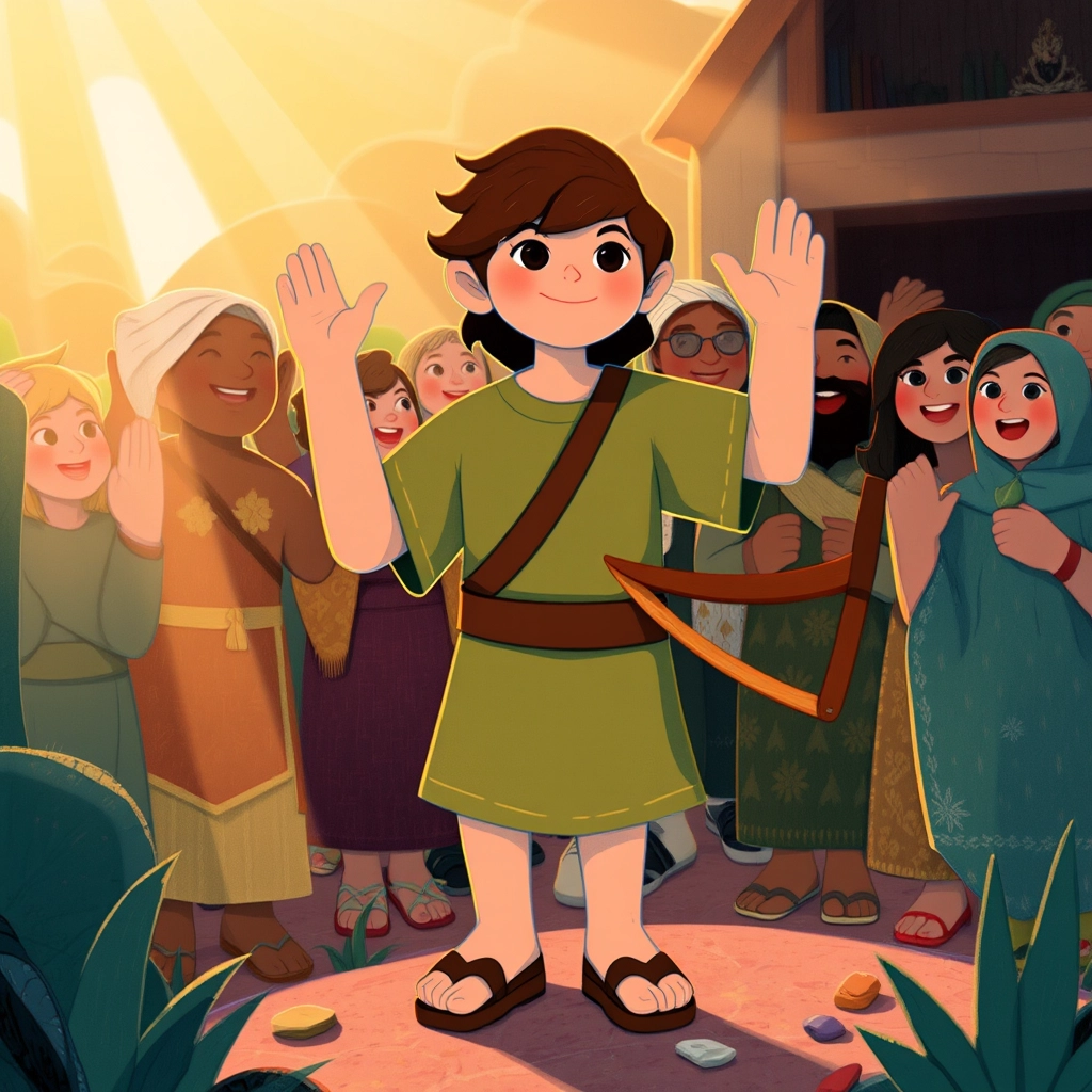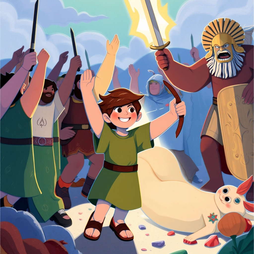 The Israelites cheered! [David](MC544RLT) had defeated [Goliath](ZPKV3PYG), not just with strength but with his bravery and faith. That day, the little shepherd proved that even the smallest among us can accomplish great things when we believe in ourselves and trust in God.