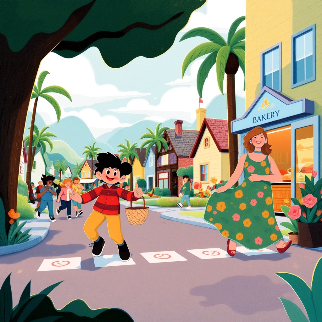 Excited for his errand, [David](BHXT555K) stepped outside. The street was alive with activity! Neighbors greeted one another, and children played in the warm sun. The aroma of fresh bread wafted through the air from the bakery on the corner. [David](BHXT555K) waved at his friends as he skipped along the pavement, determined to find the vegetable lady.