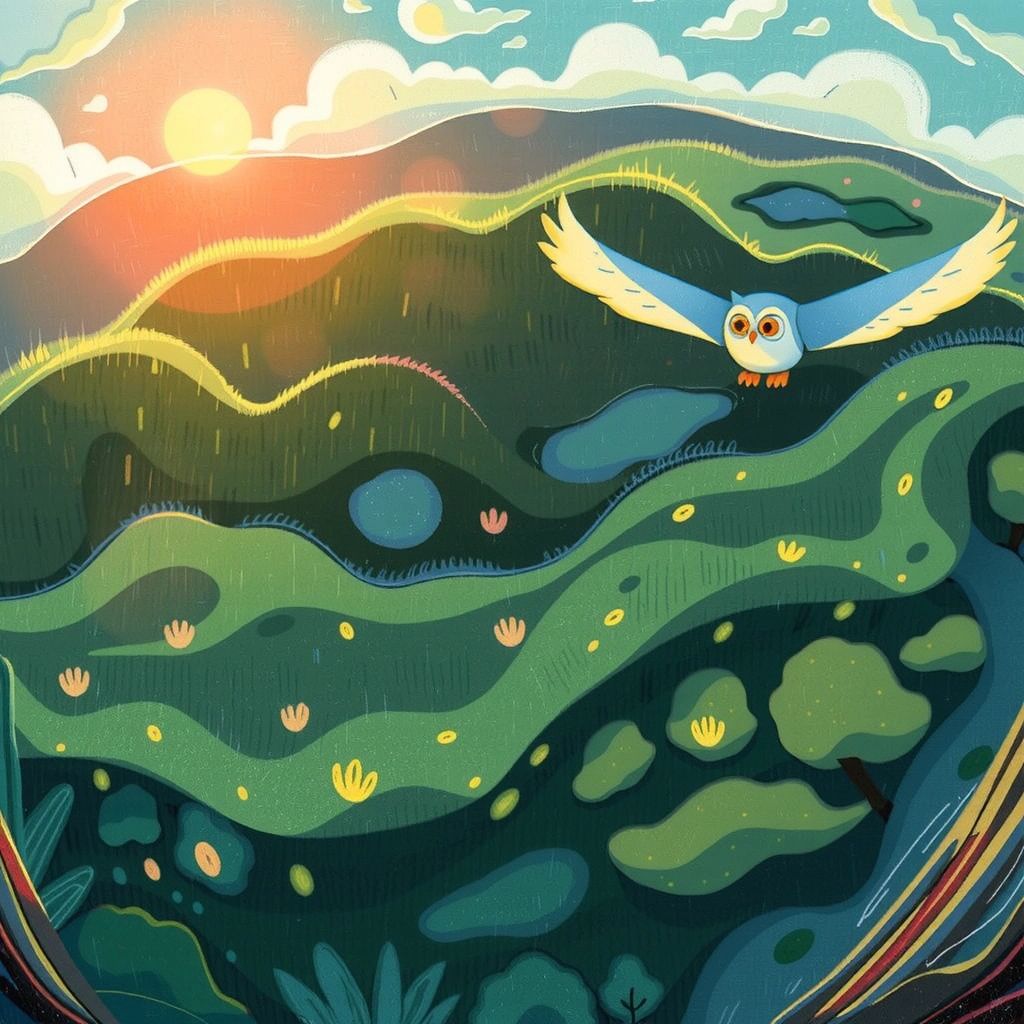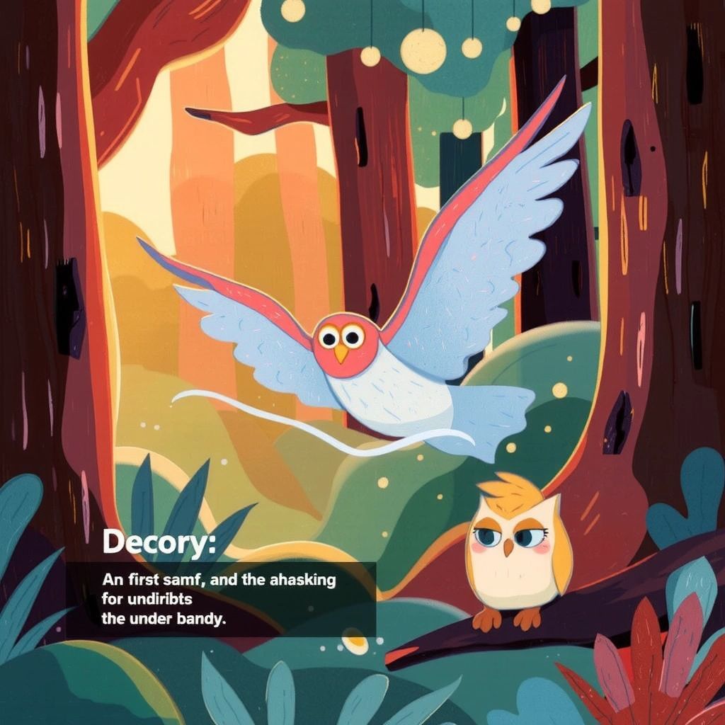 Determined, [Decory](H227DQT6) set out on his quest, soaring over the forest canopy. Below, the land unfurled like a patchwork quilt of greens and browns. The wind beneath his wings whispered secrets of the forest's wonders and hidden paths.