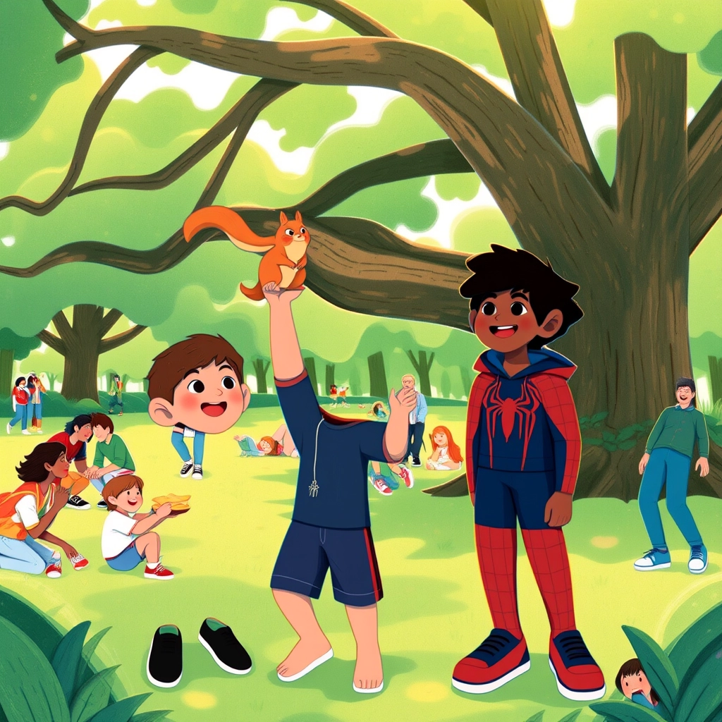 Next, they stopped a mischievous squirrel who was stealing sandwiches from the park! 'Gotcha!' laughed [Dee-Jay](H3TSSPB5) as they returned the sandwiches to the happy picnickers.