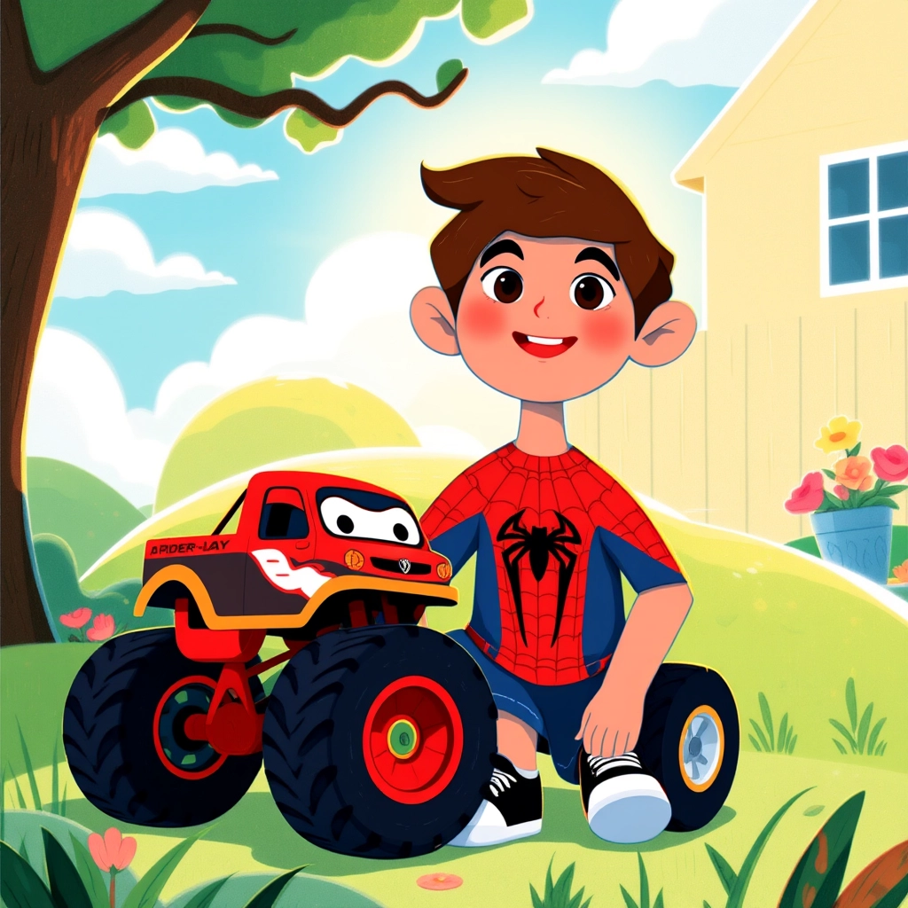 [Dee-Jay](H3TSSPB5) was a boy who loved superheroes and monster trucks. Today, he was wearing his favorite Spider-Man shirt as he played in his backyard.