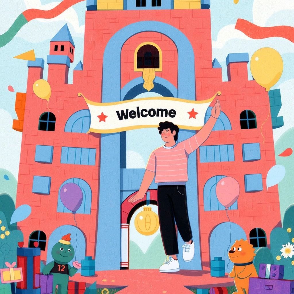 Finally, they reached the Toy Tower, the heart of Toyland, where a grand celebration awaited them. Balloons floated in the air, and a colorful banner read, 'Welcome [Deepanshu](3RZJZTHD)!'