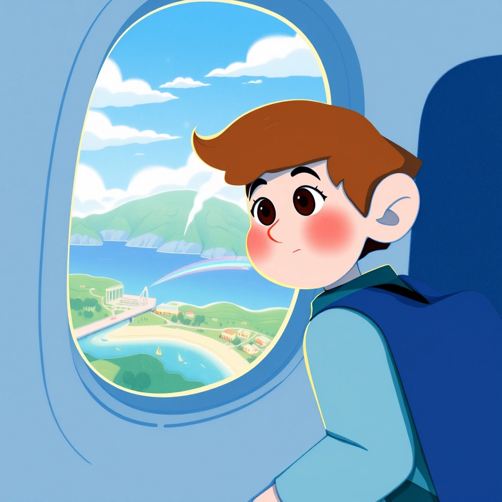 As the plane landed on the sunny island, [Dennis](WZM2FGVM) looked out the window and giggled at the sight of palm trees and golden beaches.