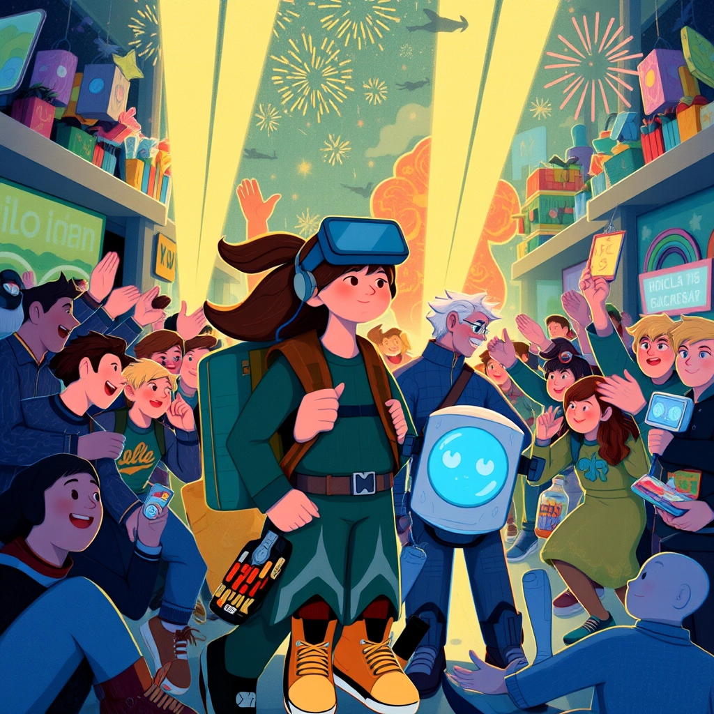 Suddenly, a glitch storm rolled in, scattering dark code shards across the realm—the trio needed to act fast to save the Bazaar!