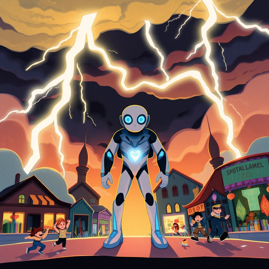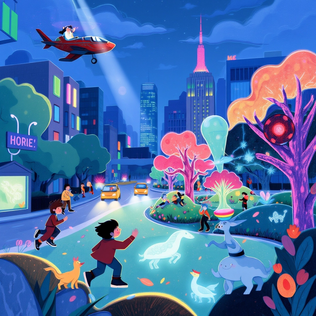 In the bustling city of Digibytes, everything operated with a digital flair—cars drove themselves, parks were interactive, and even the trees glowed with LED leaves!