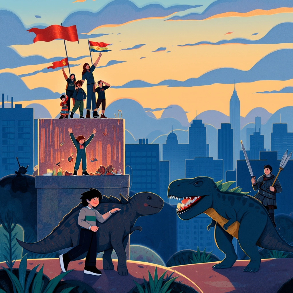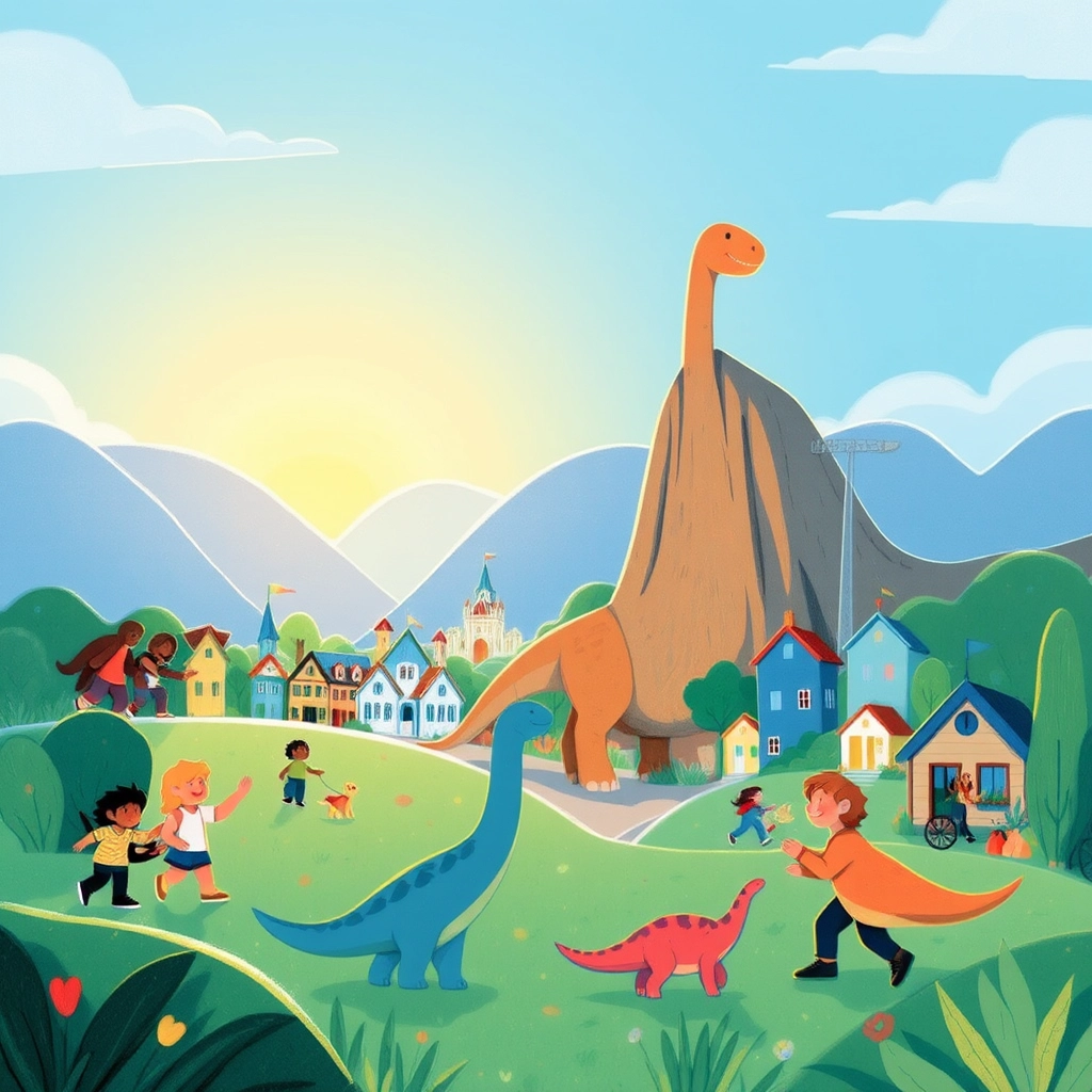 And so, the city thrived once again, thanks to the courage of the people and the friendship of their mighty dinosaur friends. Together, they created a new future full of harmony and hope.