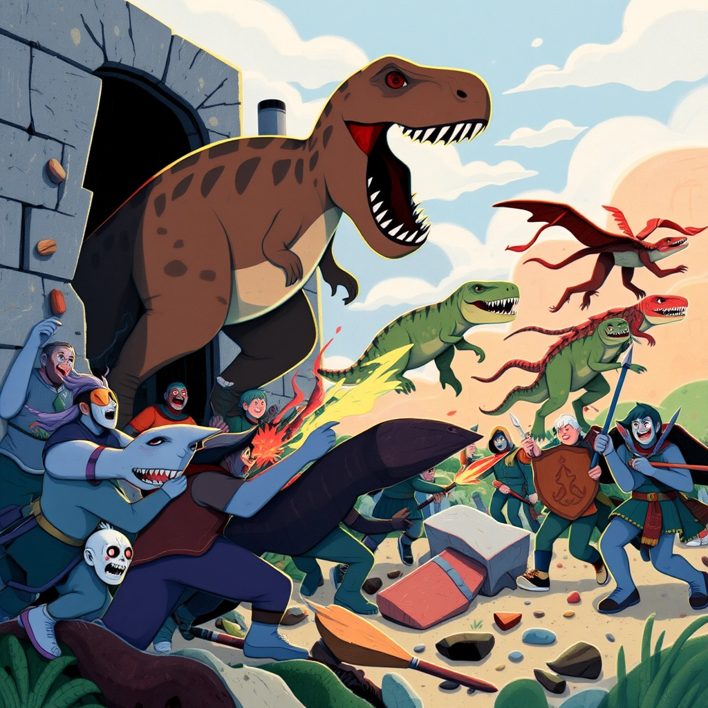 The day of the attack finally arrived. The warriors rode into battle atop their new dinosaur allies, charging toward the zombie-infested city as the ground shook beneath their feet.