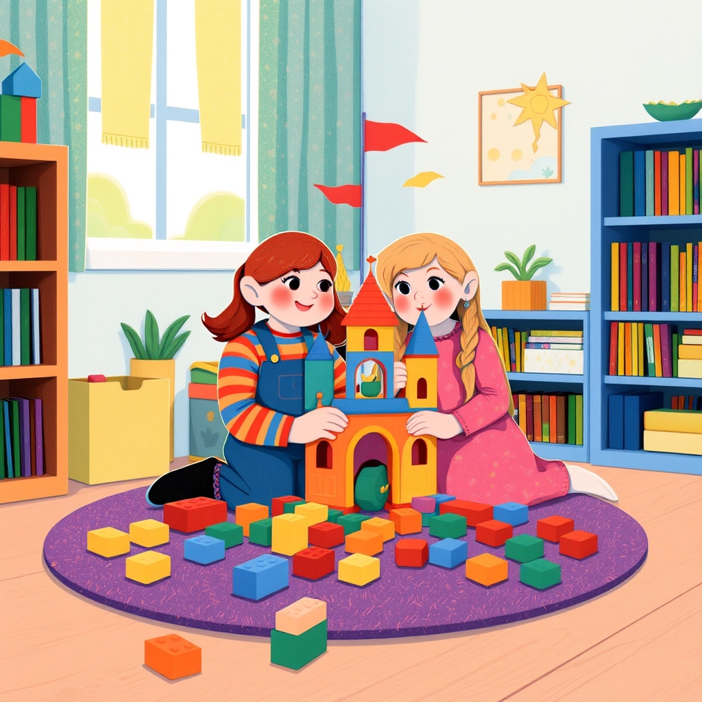 During playtime, a girl named [Sophie](RTGJ5G4F) asked [Dottie](HSCPNN9Z) to help build a castle. [Dottie](HSCPNN9Z) hesitated. “But… what if I don’t build it right?” [Sophie](RTGJ5G4F) giggled. “There’s no wrong way! Let’s build it together.” [Dottie](HSCPNN9Z) smiled. Maybe kindy wasn’t so scary after all.
