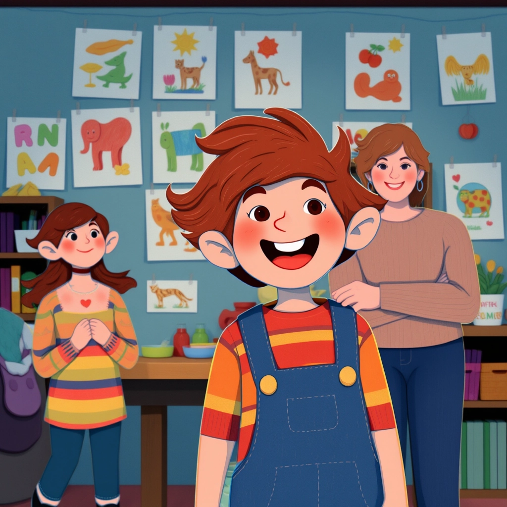 [Eli](V9L9J4CD) was a boy with wild curls and a big, booming laugh. He always seemed to be up to something cheeky. “I just know he’s going to take my sandwich,” [Dottie](HSCPNN9Z) whispered to her [Mum](2S9QRL75). Her mum smiled. “Sometimes people surprise you, [Dottie](HSCPNN9Z), if you give them a chance.”