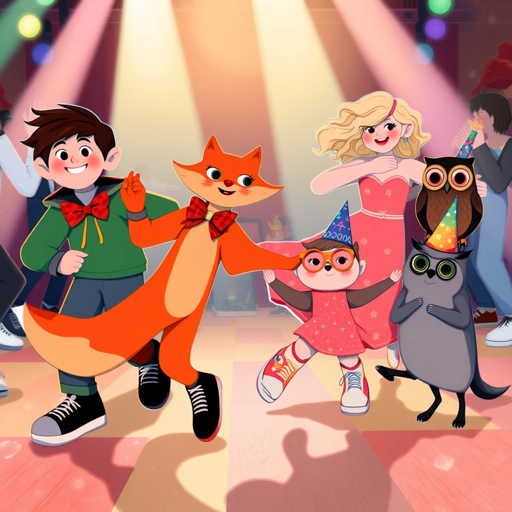 'Spin and clap your hands!' shouted [Fox](L5XKQR59). Everyone giggled and stumbled into each other, but no one minded—it was part of the fun!