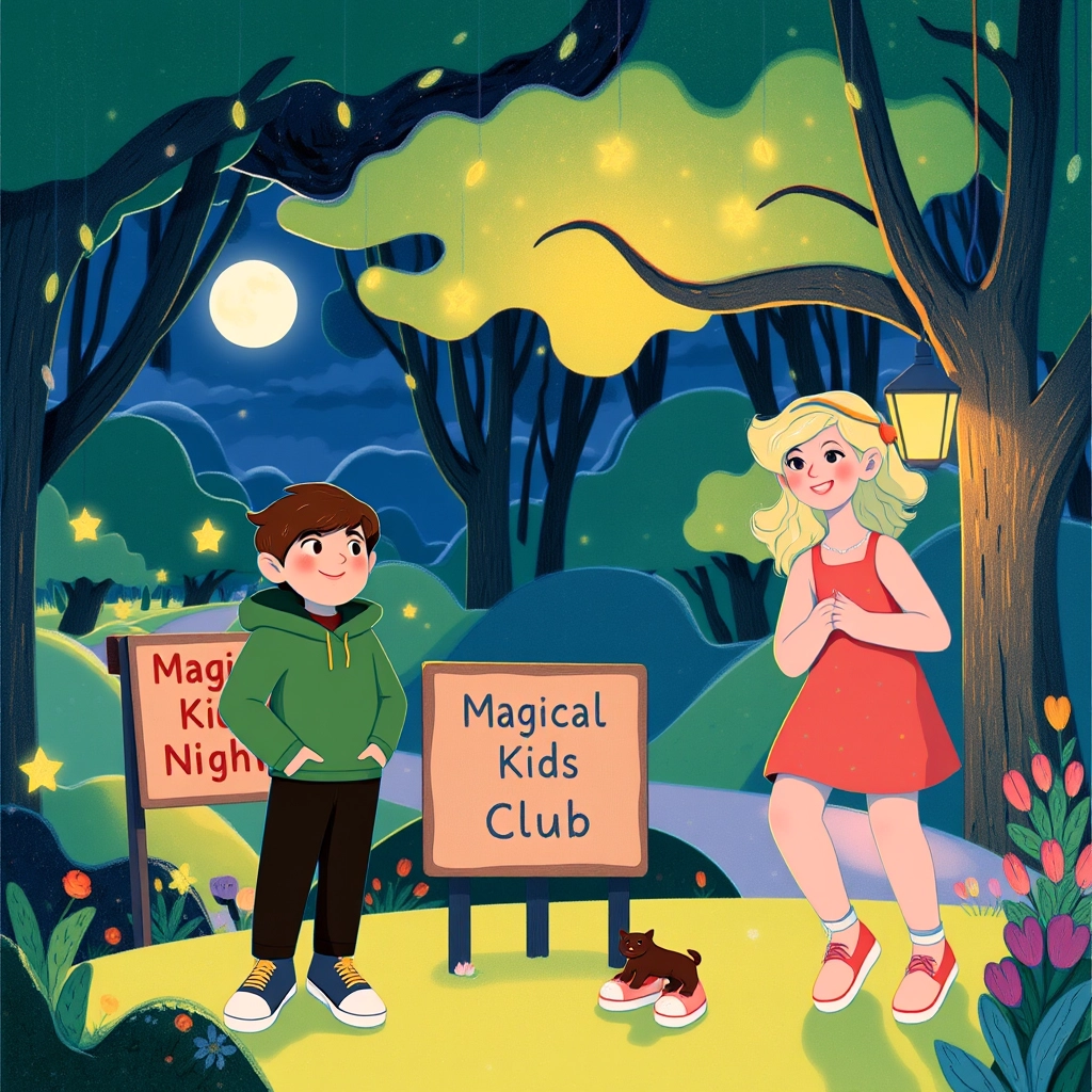 [Dylan](HZWSKGJJ) and [Kate](43L7C372) were best friends who loved to explore. One chilly autumn night, they discovered a magical club where music and laughter filled the air.