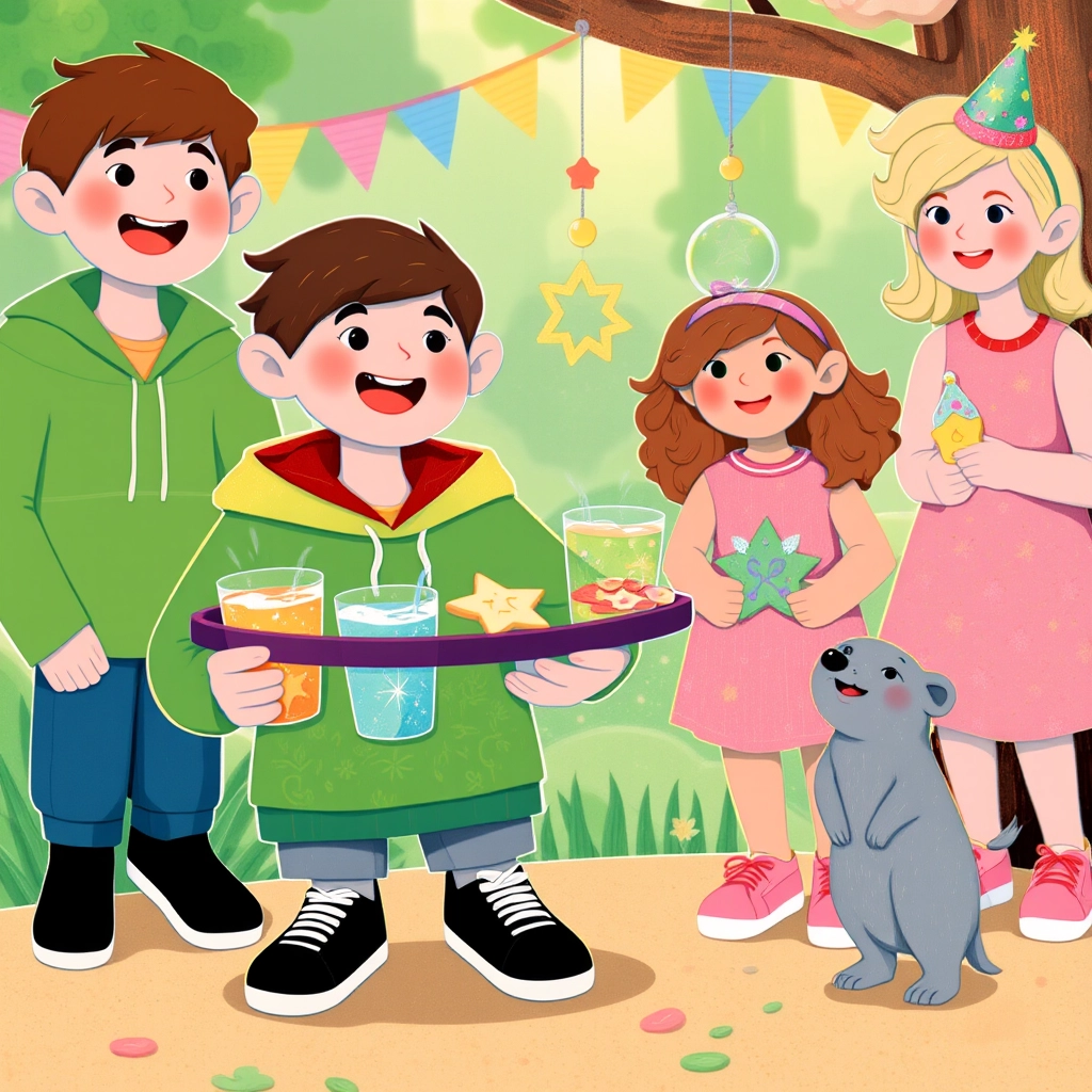 After all the dancing, [Hedgehog](63VH3HGF) brought out a tray of sparkling juice and magic snacks that gave everyone energy to keep dancing.