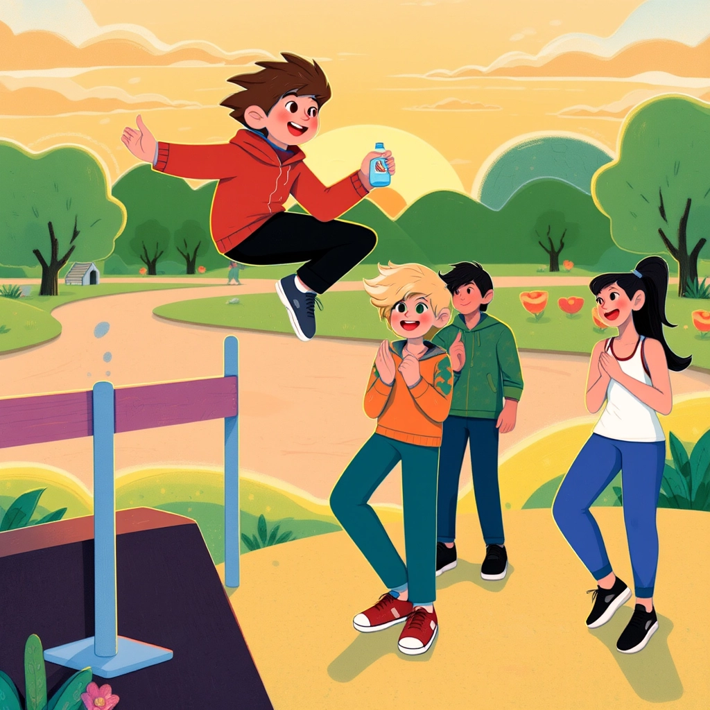Suddenly, a mysterious figure appeared in the park. She introduced herself as [Zara](Y4QJRT6R), a parkour champion. She had seen [Dylan](S5YKY2G6)’s moves and decided to teach him a few tricks to overcome his fears.