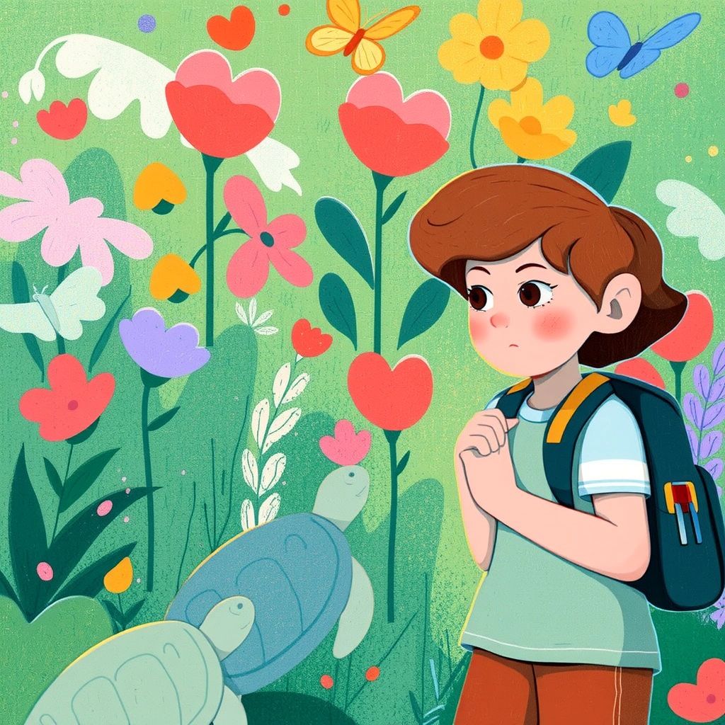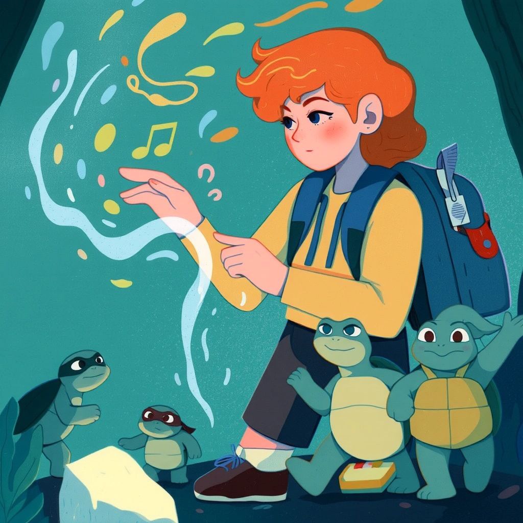 One sunny afternoon, [Elizabeth](XV25HBQN) heard a strange sound while playing in the garden. She followed the melody and discovered a group of turtles, all chatting to one another!