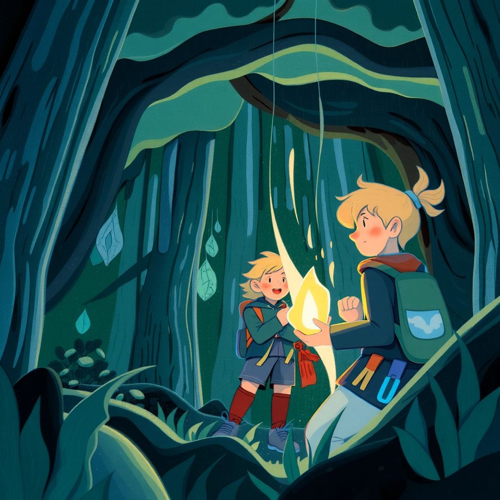 Following the map, [Elizabeth](XV25HBQN) and her friends ventured to a hidden clearing. There they discovered an unusual stone that glowed with a magical light.