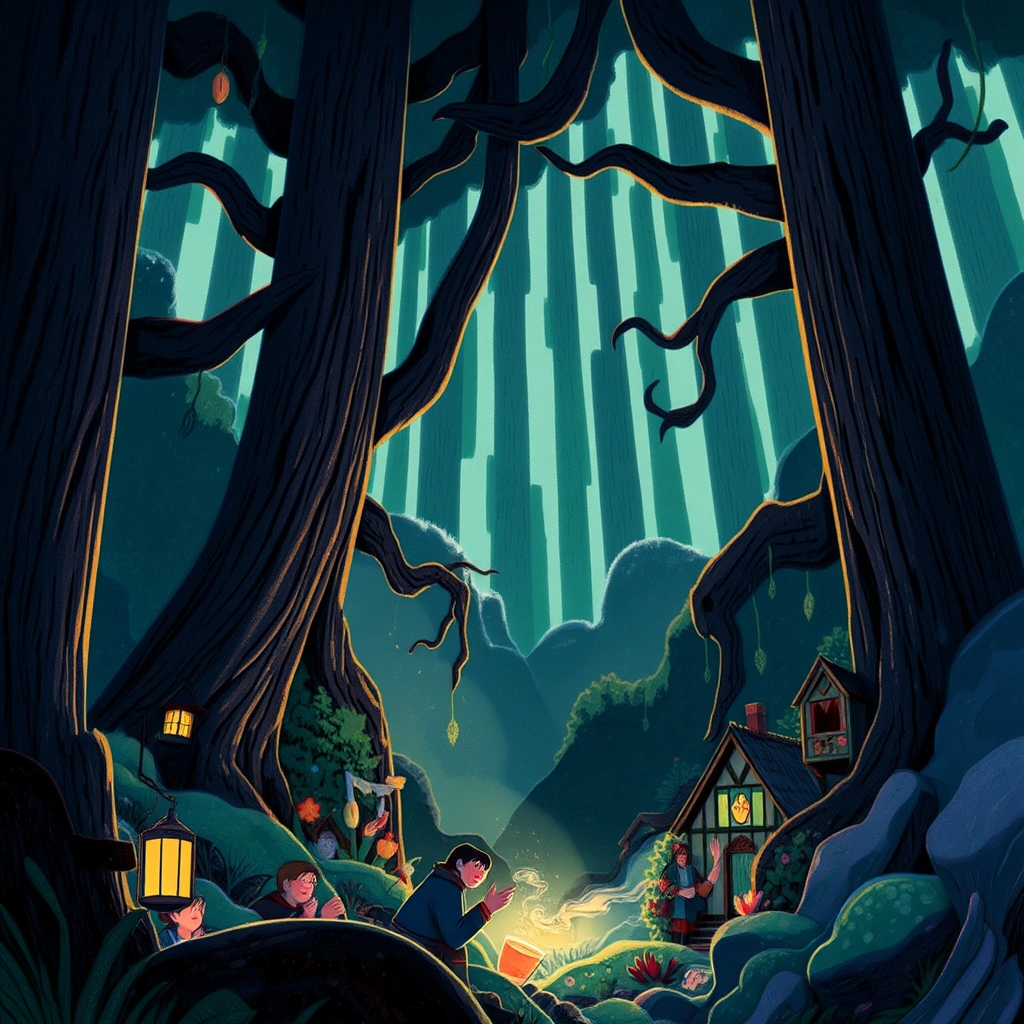 But the forest was not just magical — it was mysterious. Every child in the town knew the stories: deep within the trees lived shadows who stole light. One day, the light inside the town lanterns began to fade, and everyone grew worried.