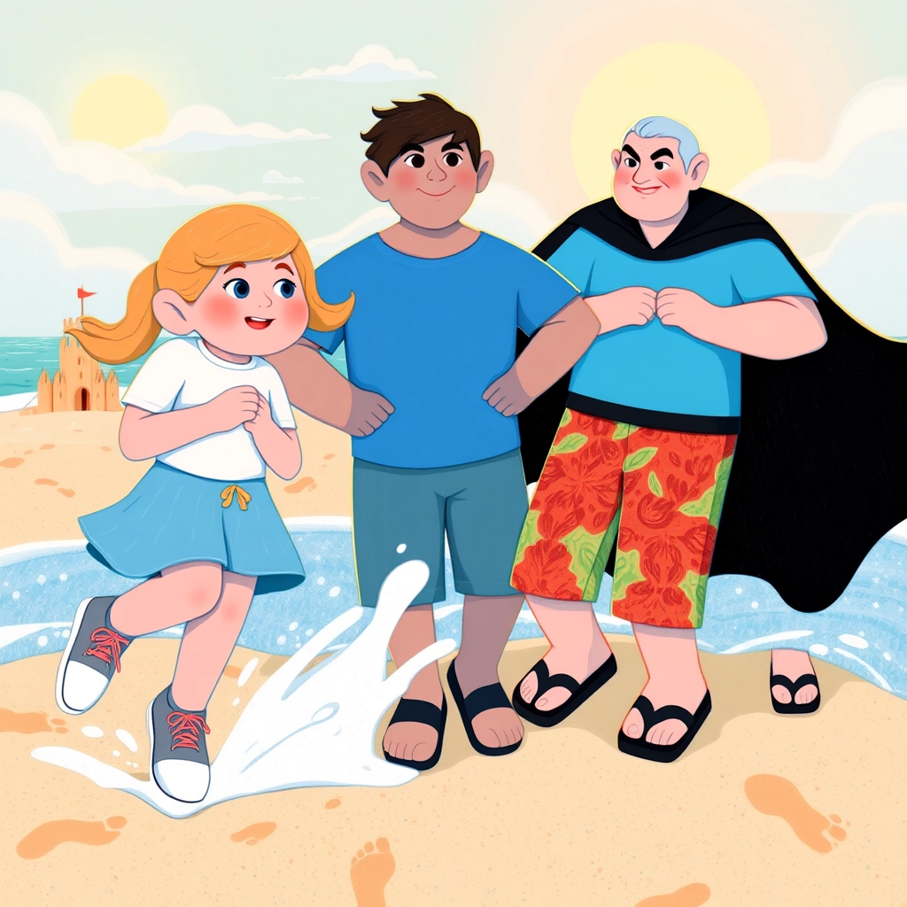 From that day on, the [Evil Woman](PQ9Q7THT) wasn’t so evil anymore. And [Elle](9X63JW2T), [Greg](GVXL9PJV), and their new friend enjoyed many more fun days at the beach together!