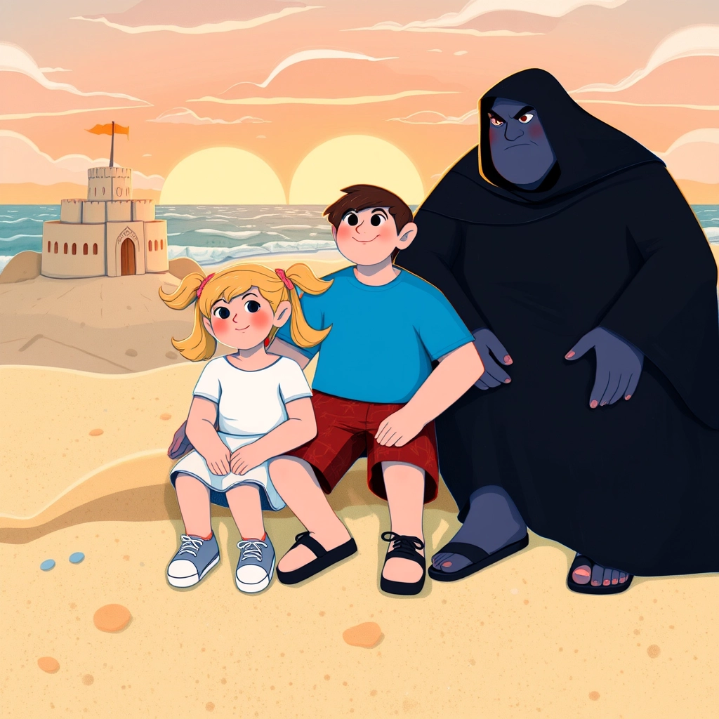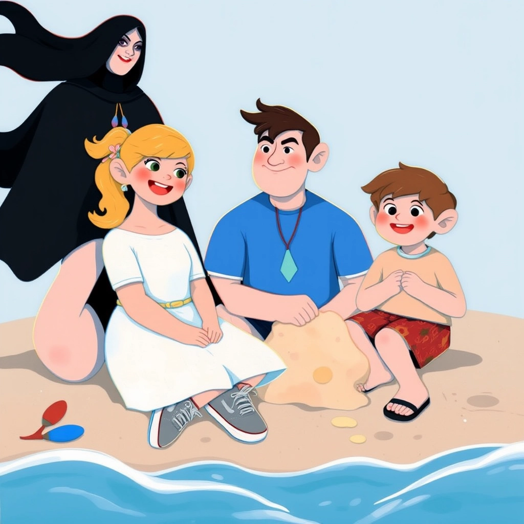 To everyone’s surprise, the [Evil Woman](PQ9Q7THT) agreed, saying, 'Fine, but it better be the best sandcastle I’ve ever seen!' She sat down to help.