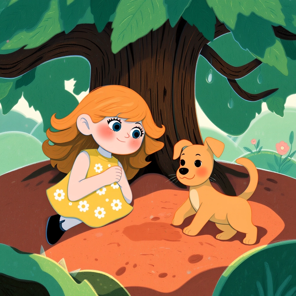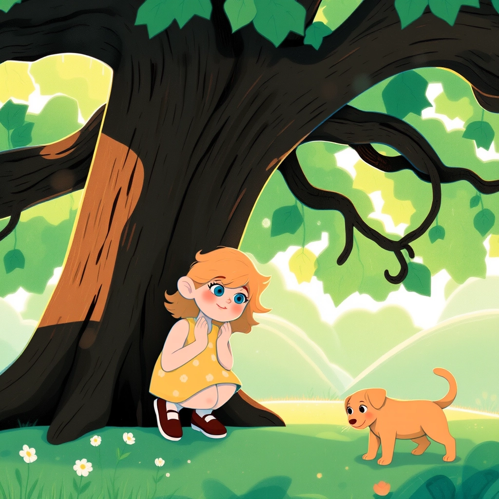 One day, [Ellie Mae](NNN6DH4R) noticed [Pippin](DCLB46LH) sniffing around the big oak tree. "What is it, [Pippin](DCLB46LH)?" she asked, her blue eyes wide with curiosity.