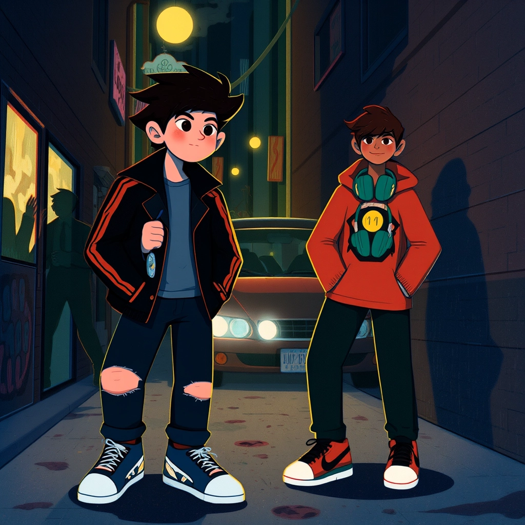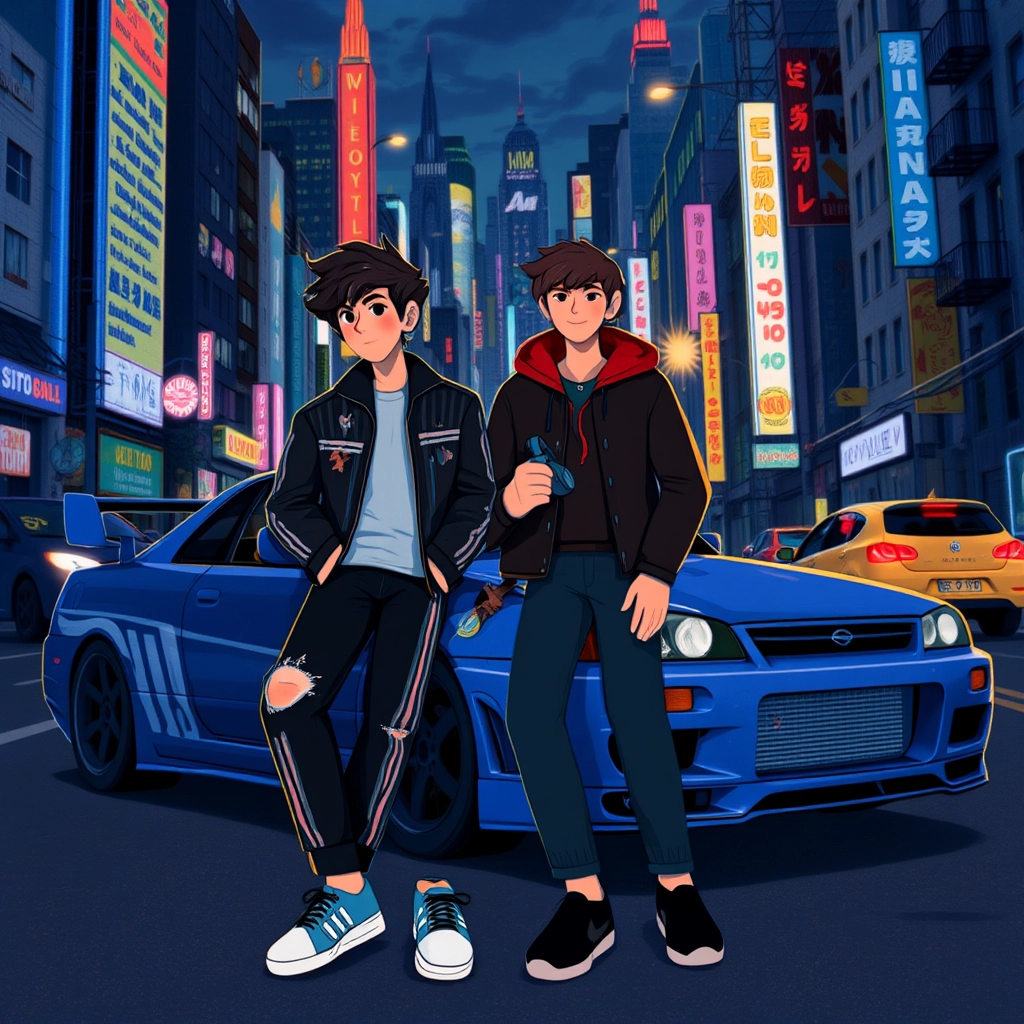In the heart of the bustling city, [Ellz](X52VZGSC) and [Spydaman](BLTLW7Q5) ruled the streets. [Ellz](X52VZGSC) was a fearless teenage street racer with a love for speed and danger, while [Spydaman](BLTLW7Q5), his twin brother, found rhythm and meaning in music. Together, they chased dreams as vibrant as the neon lights above.