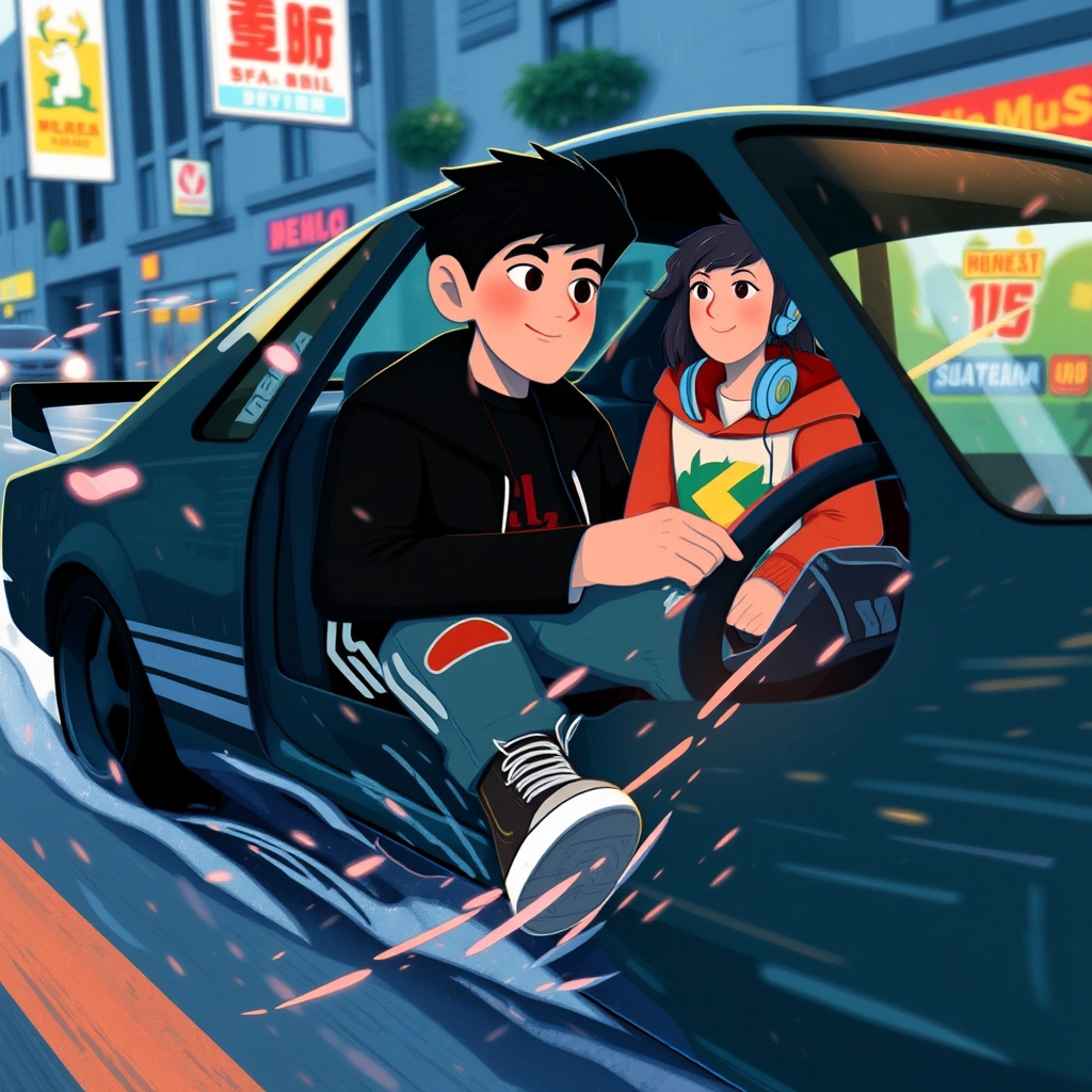 [Ellz](X52VZGSC)’s passion was racing. Nothing matched the rush of the engine's roar or the freedom of flying down an open road. Meanwhile, [Spydaman](BLTLW7Q5) had a passion of his own—his music told stories of the streets and the lives they touched. Together, they were unstoppable.