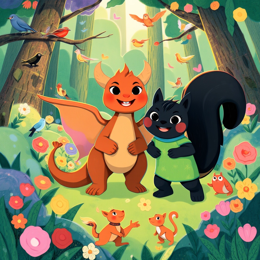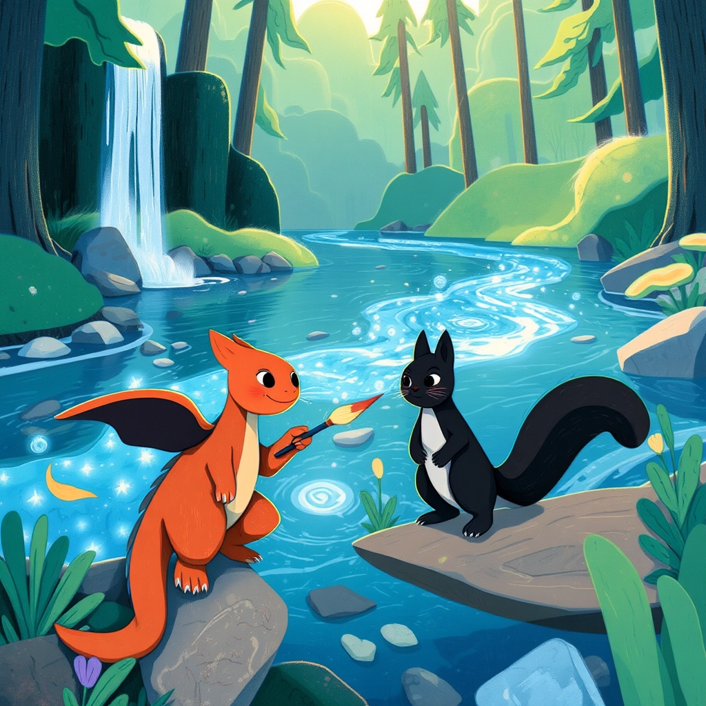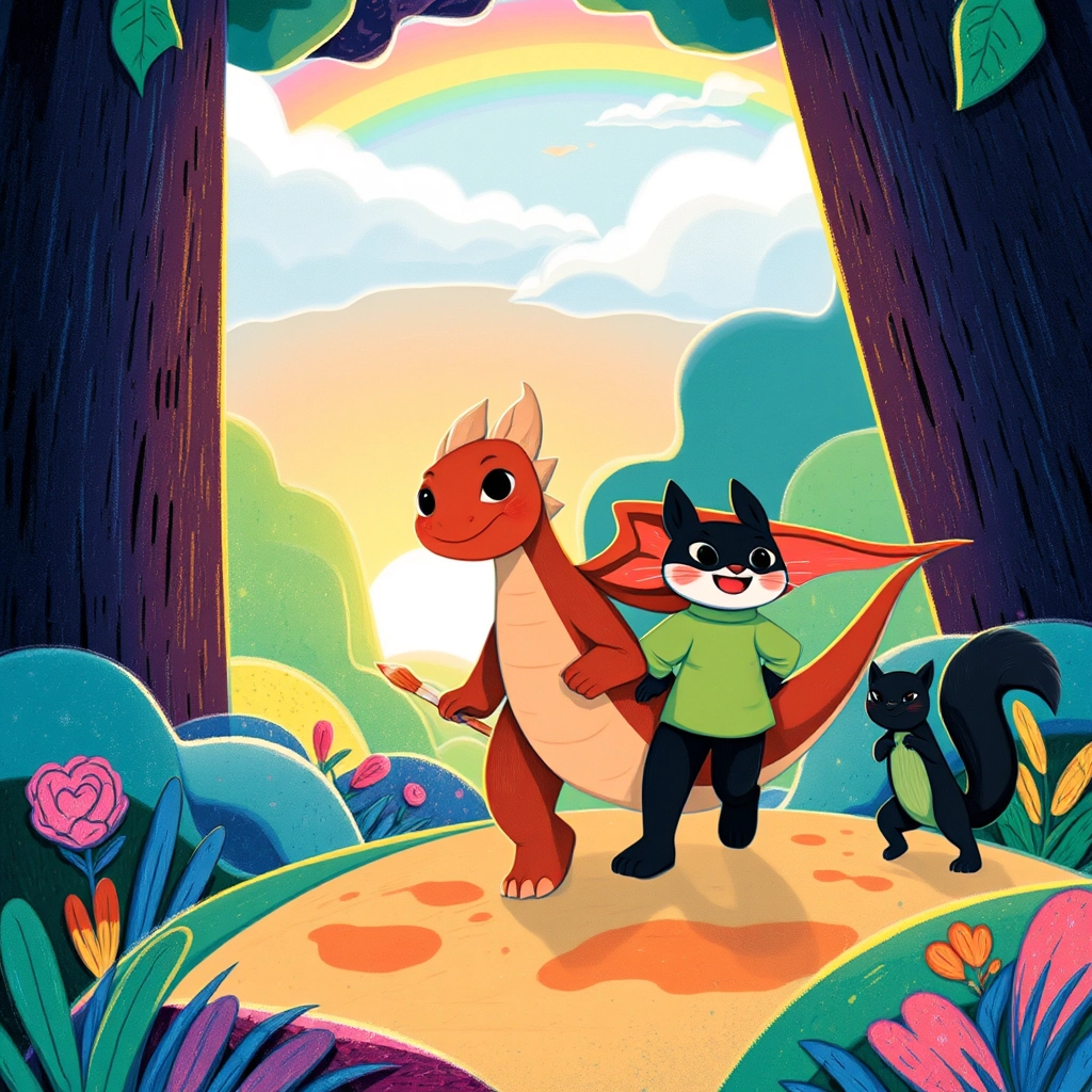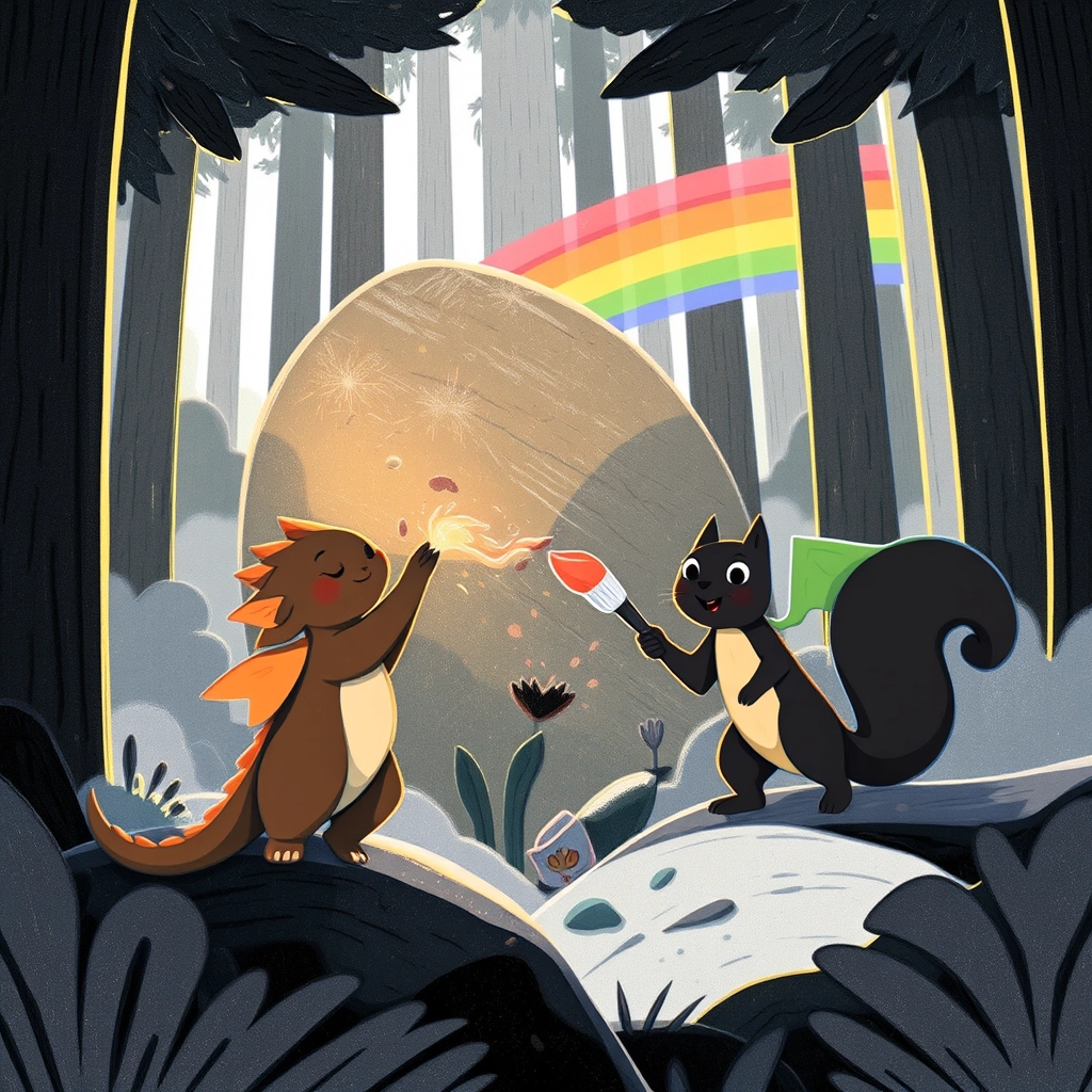 One morning, [Ember](VFR57JVH) the dragon woke up to a strange sight—all the colors in his forest were gone! The trees were gray, the sky was white, and even flowers had lost their cheerful hues.