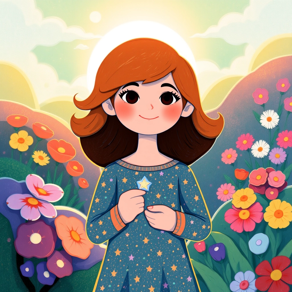One sunny morning, [Emma](QKPD6QJ2) woke up with a sparkle in her eyes. Today was the day she would explore the garden to find something magical! She slipped on her twirly pink skirt and dashed out the door, her wavy brown hair bouncing in excitement.
