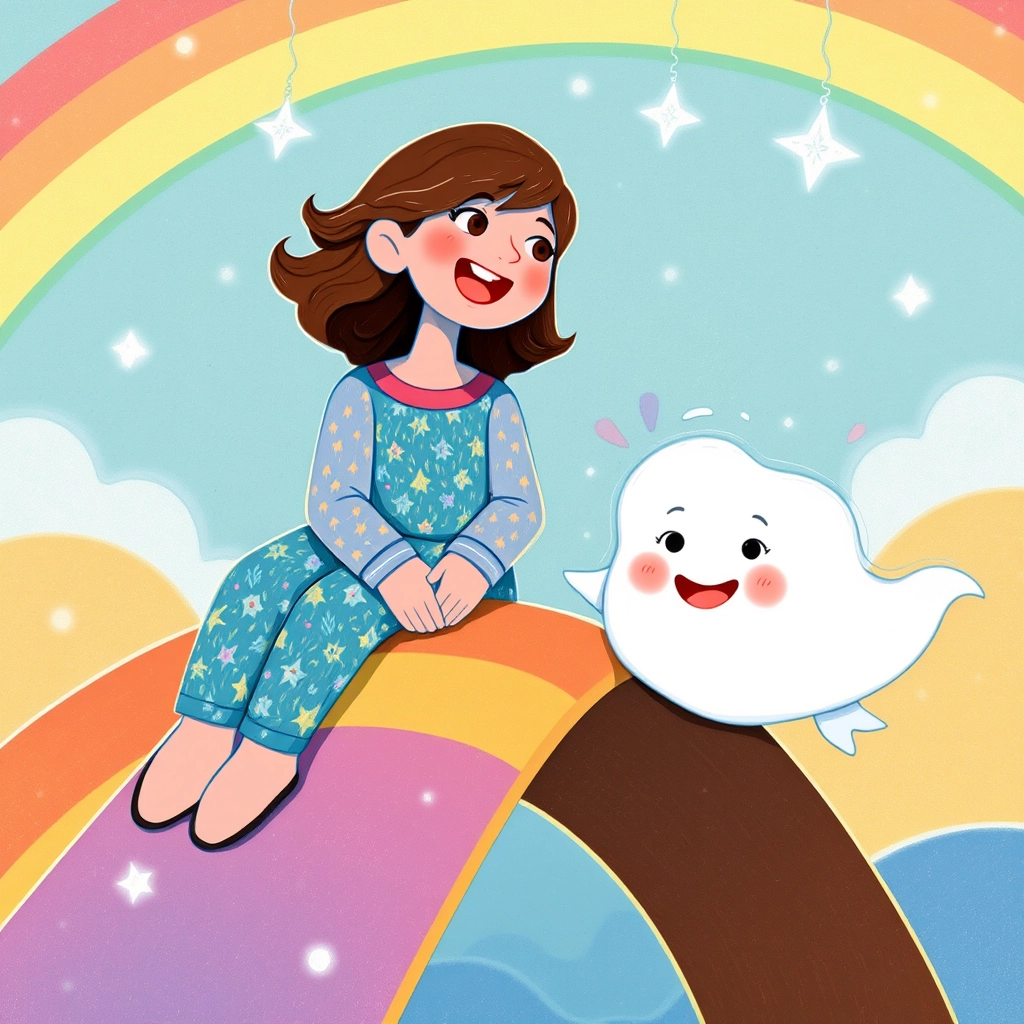 [Emma](QKPD6QJ2) stepped onto the crystal bridge, her heart thumping with excitement. As she walked, sparkling stars swirled around her, and she found herself in a colorful land filled with fluffy clouds and a rainbow sky!