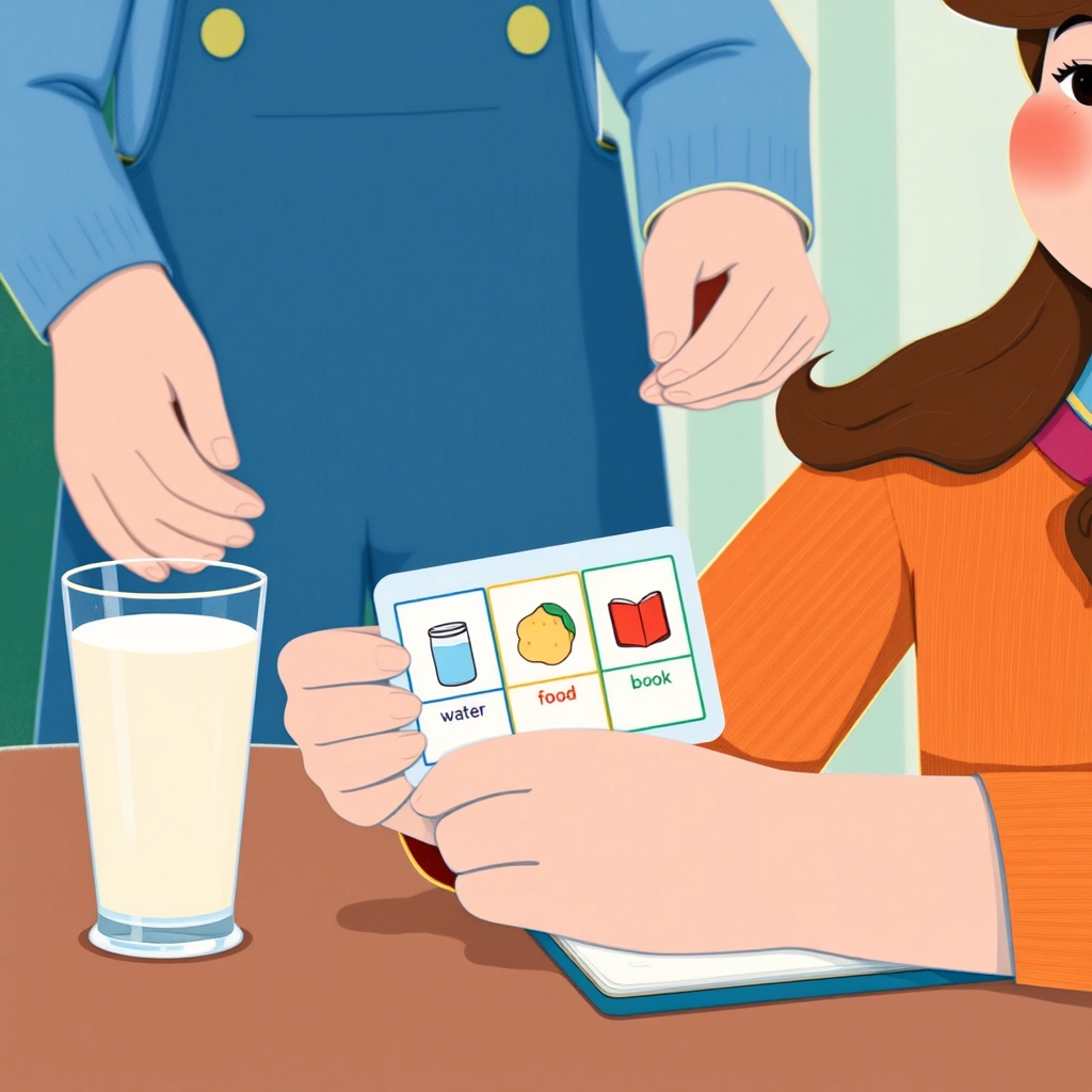 [Emmy](ZZBBX7CC)'s words sometimes came out slower, and it could take her longer to find the right ones. But she had a little card with pictures that helped her say what she needed, like a picture of water when she was thirsty.
