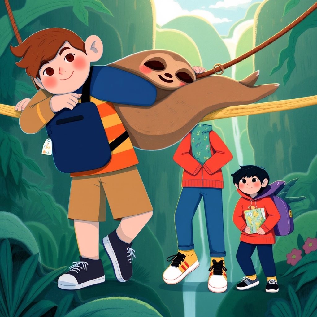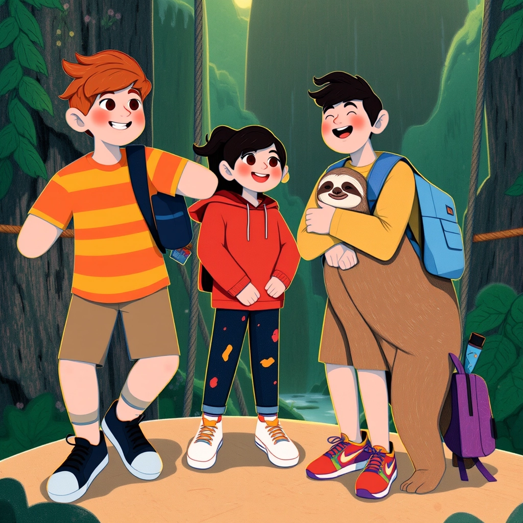 Suddenly, they heard a rustle in the bushes. A brightly feathered parrot popped out and said, 'Beware of the Giant [Sloth](WM5G5TBS) Bridge. It can only be crossed with courage and laughter!'